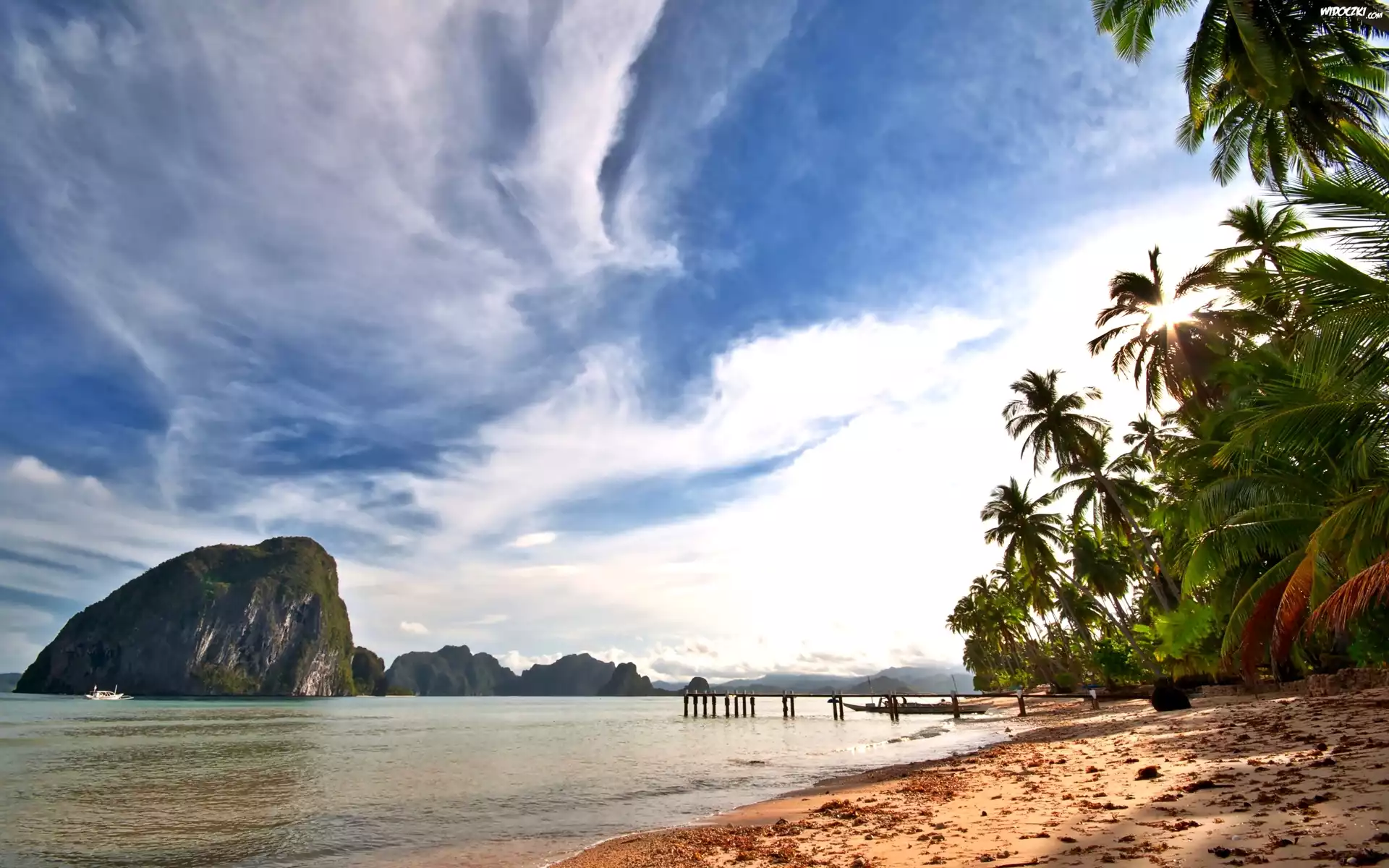 Zdjęcia, Palmy, Skały, Jezioro, Chmury