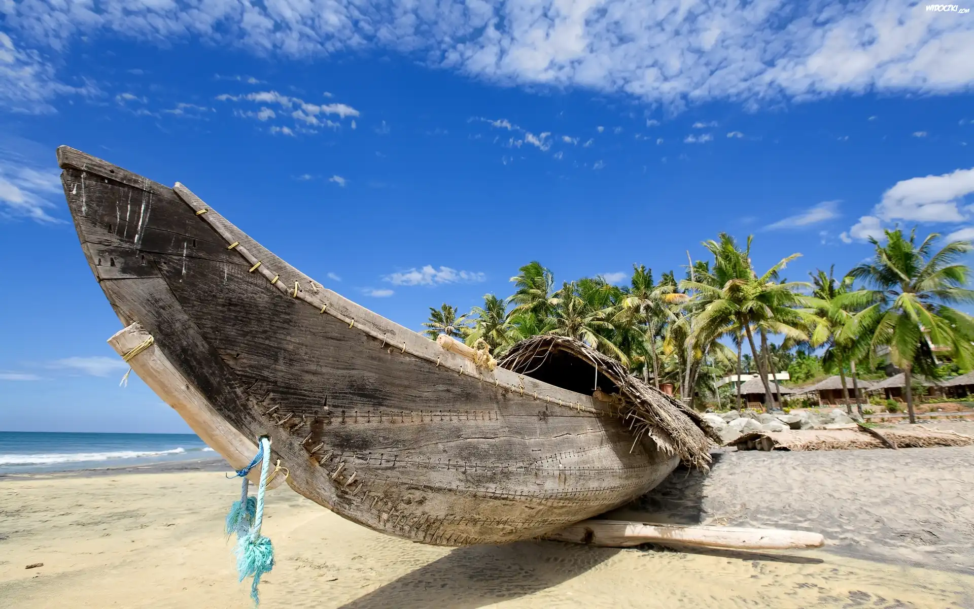 Zdjęcia, Łódz, Plaża, Palmy, Tropik