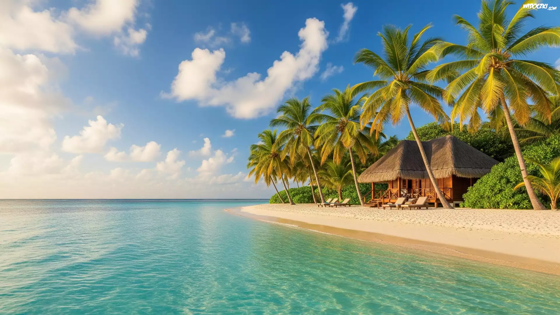 Zdjęcia, Dom, Palmy, Plaża, Morze, Tropiki