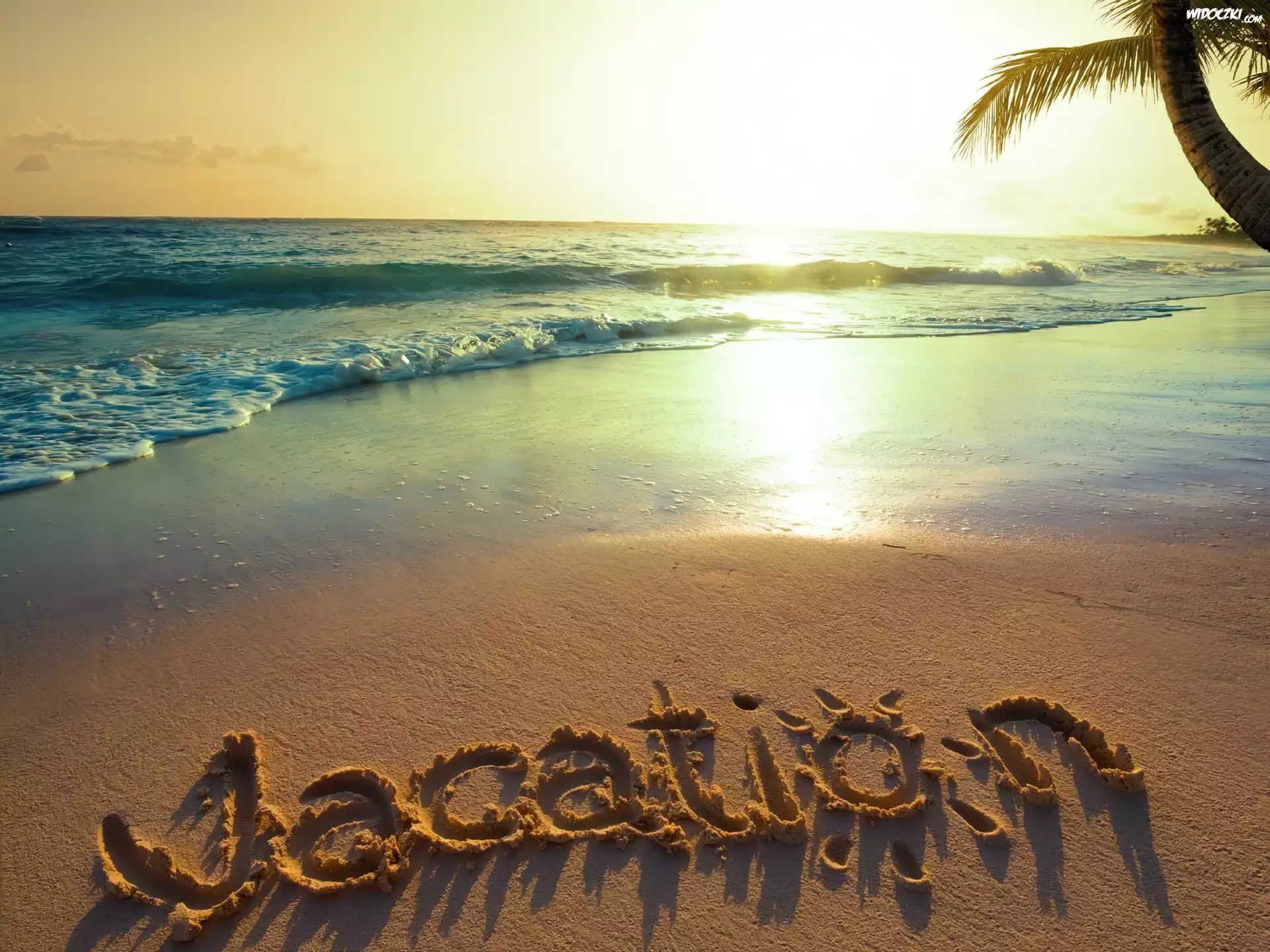 Zdjęcia, Plaża, Palmy, Morze, Fale, Promienie, Słońca, Wakacje