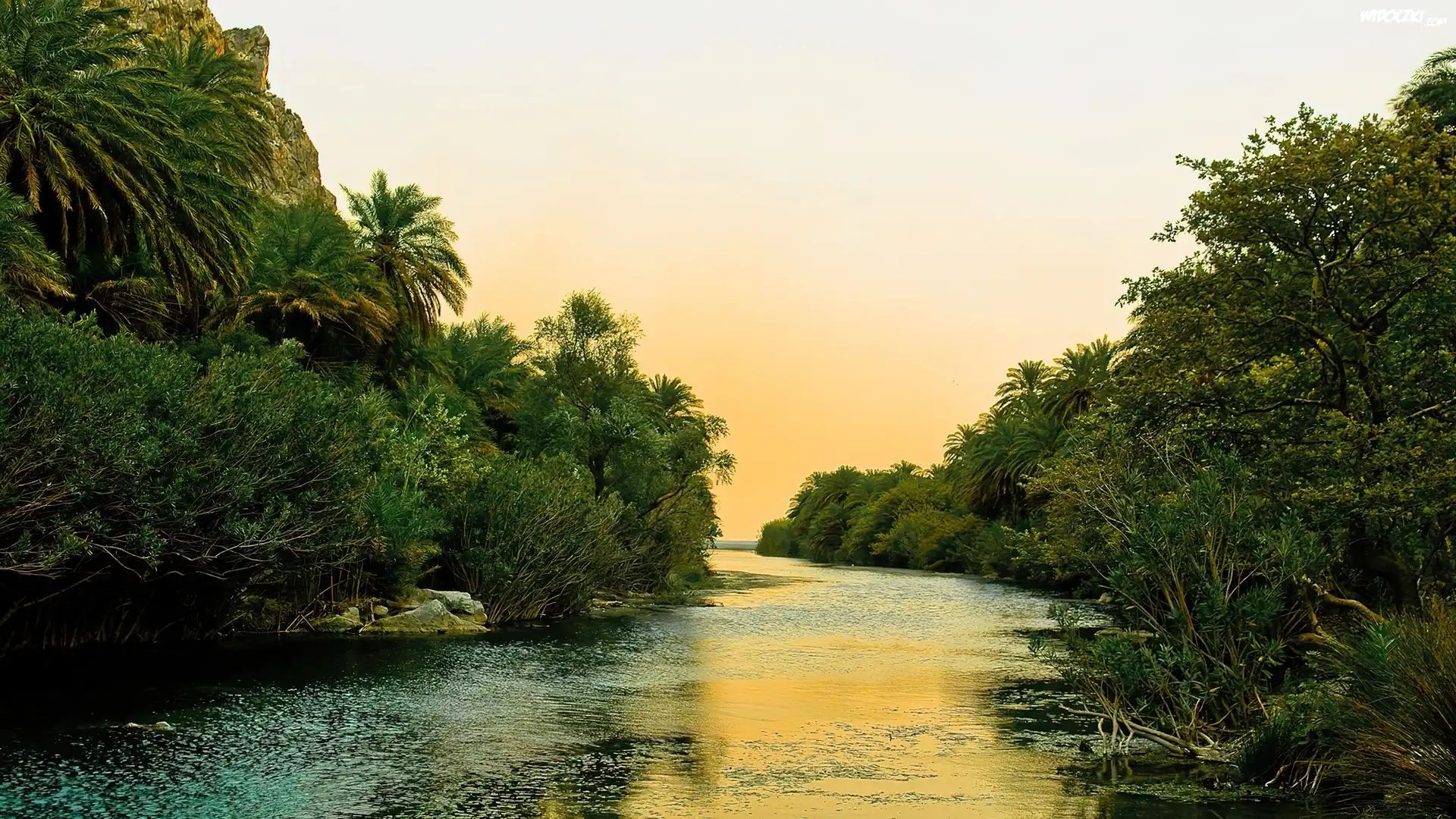 Zdjęcia, Rzeka, Palmy, Zarośla