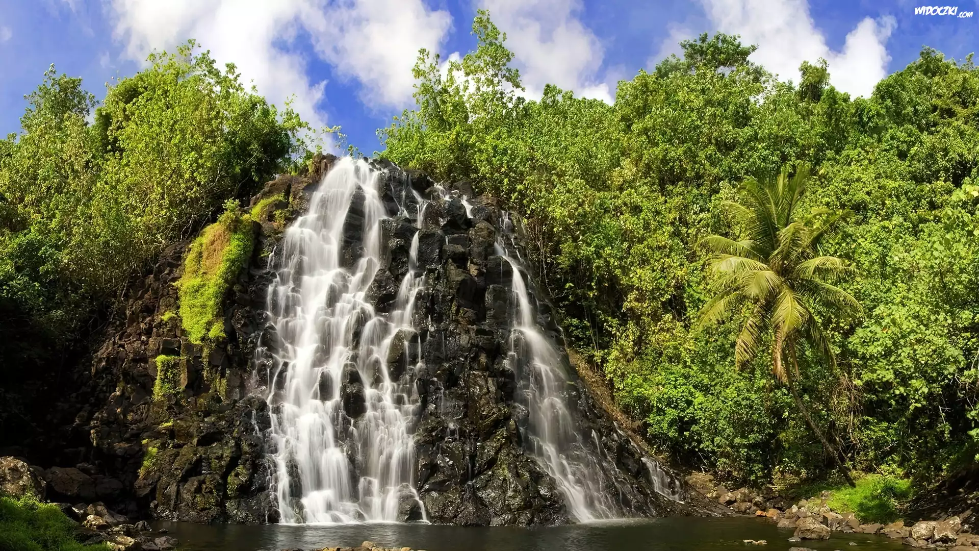 Zdjęcia, Wodospad, Palmy, Krzewy