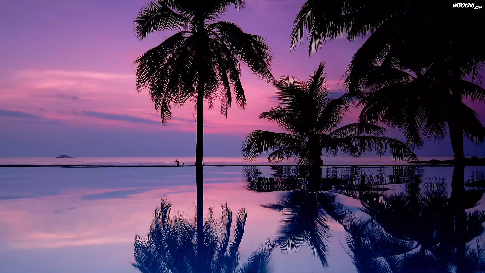 Zdjęcia, Palmy, Morze, Zachód, Słońca