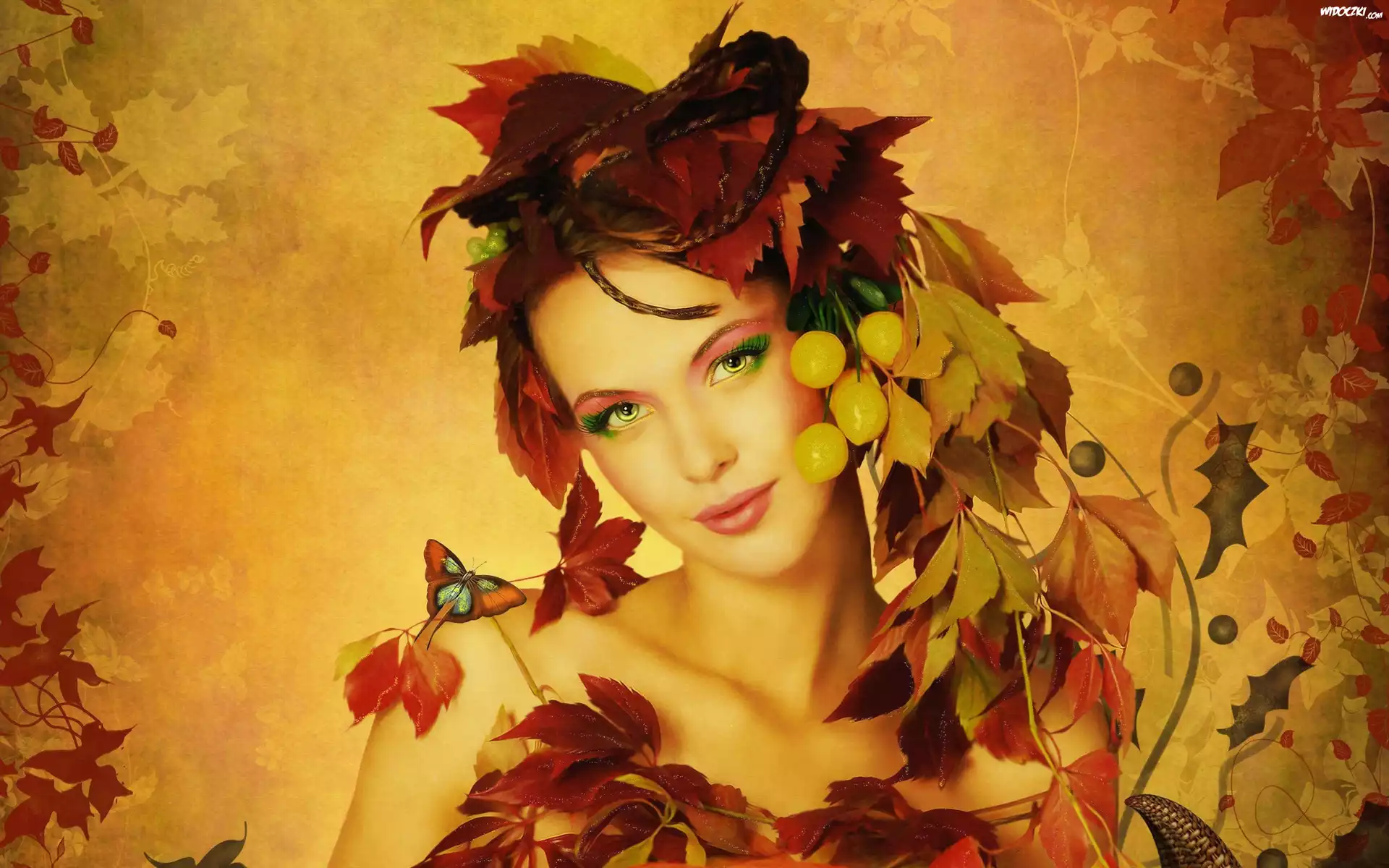 Pani, Jesień, Liście, Grafika