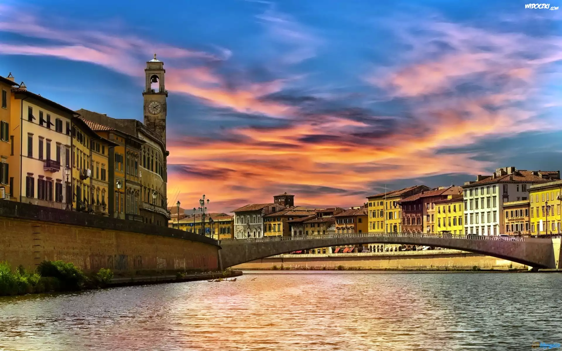 Zdjęcia, Panorama, Piza, Włochy, Most, Rzeka