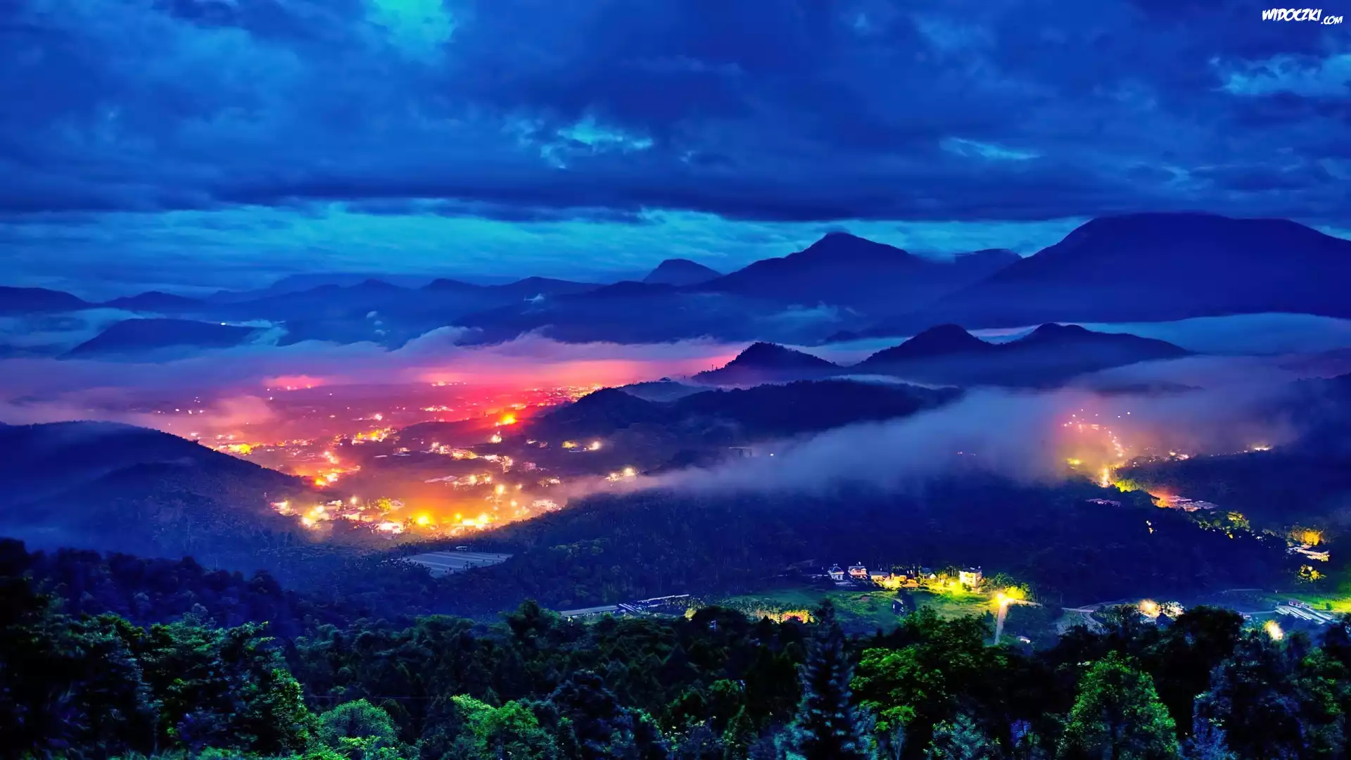 Zdjęcia, Panorama, Miasta, Nocą, Góry