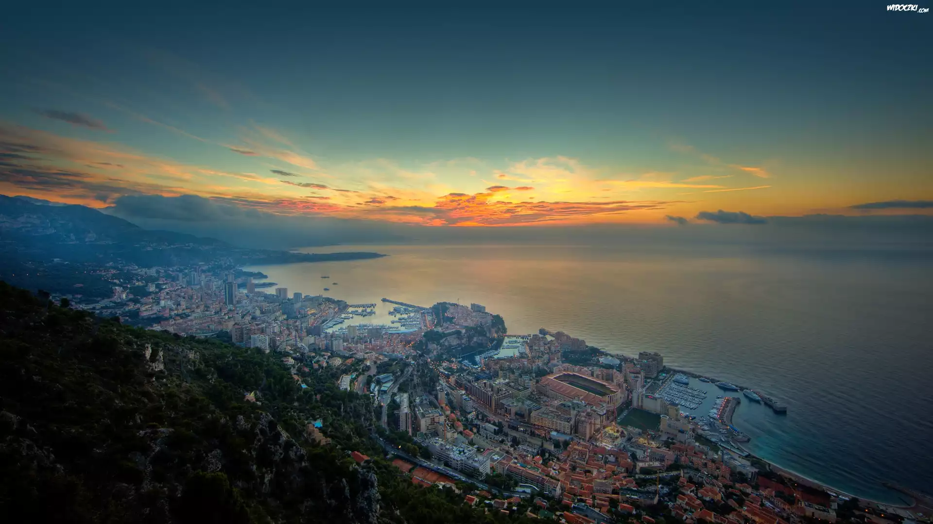 Zdjęcia, Panorama, Miasta, Zachód, Słońca