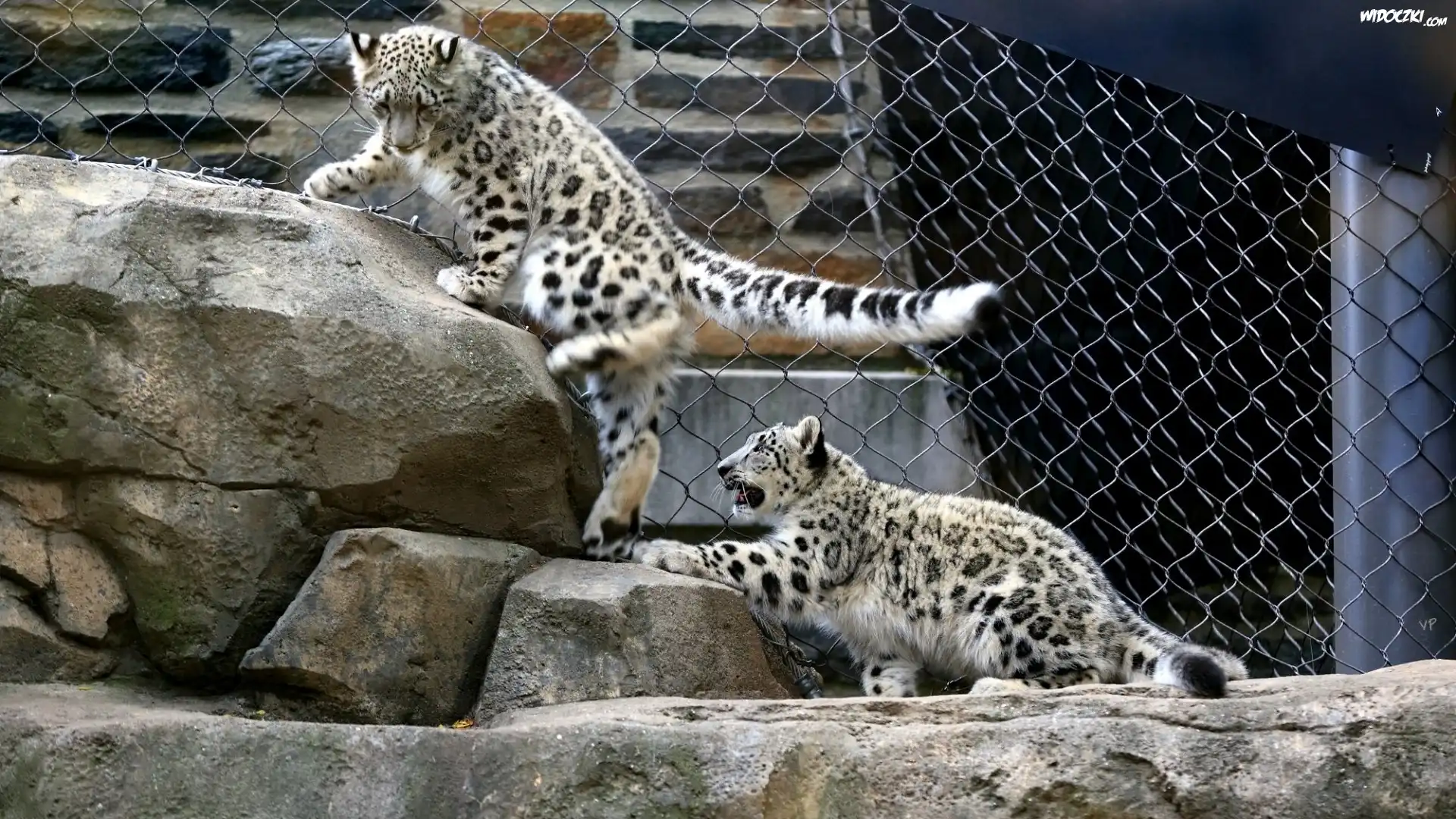Zdjęcia, Pantery, Śnieżne, Skały, Ogrodzenie, Irbisy