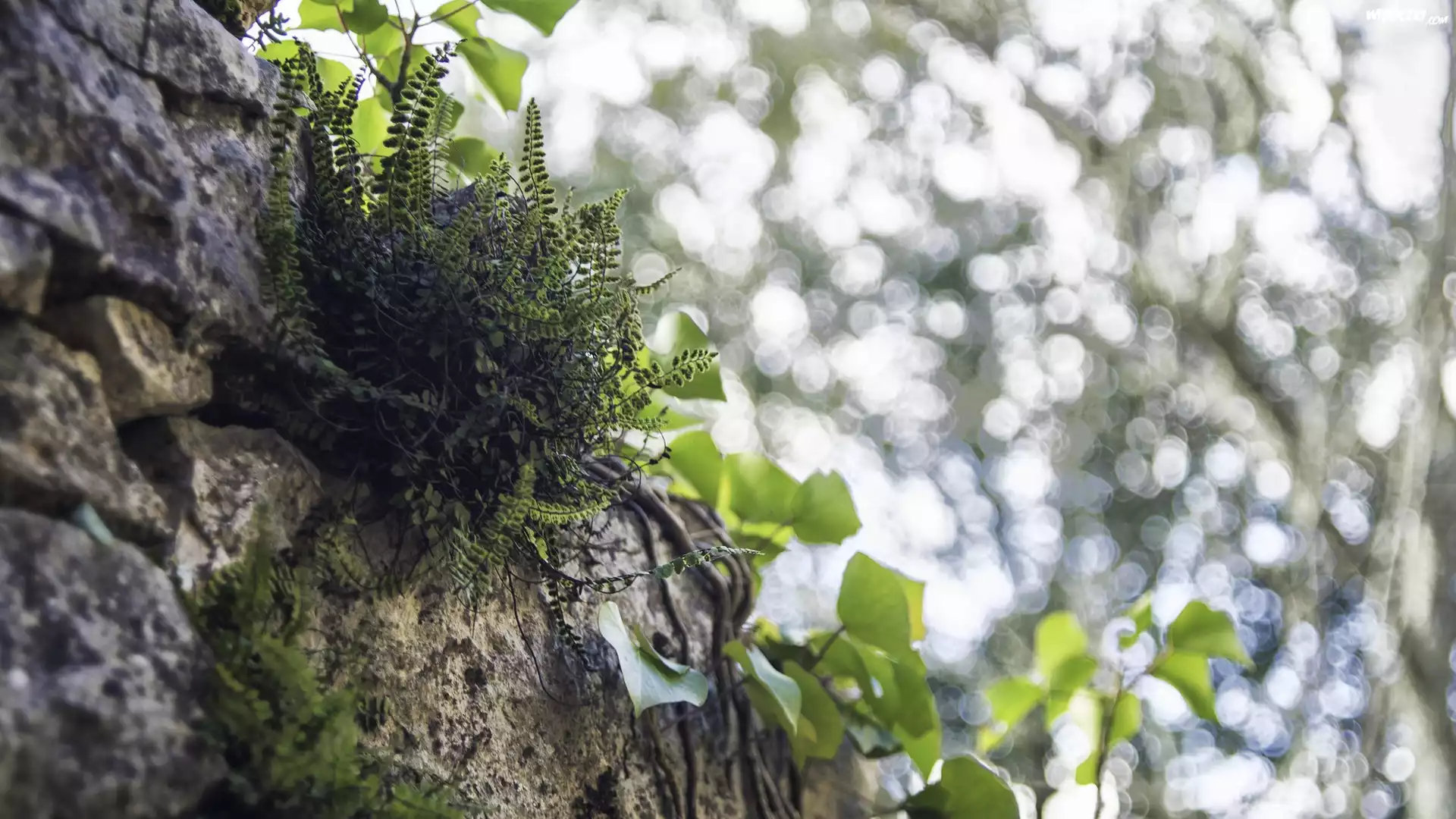 Zdjęcia, Paproć, Skały, Rośliny, Bokeh