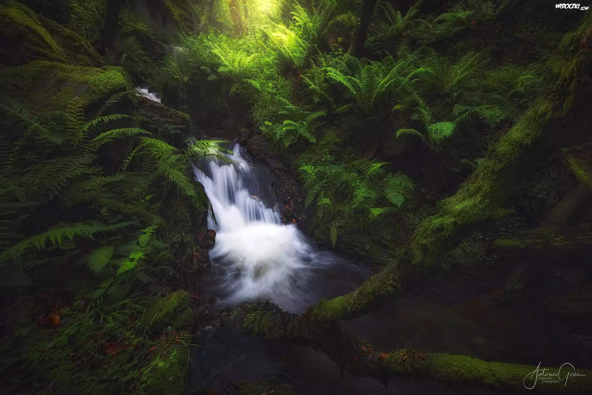 Zdj臋cia, Las, Paprocie, Potok, Nawarra, Hiszpania