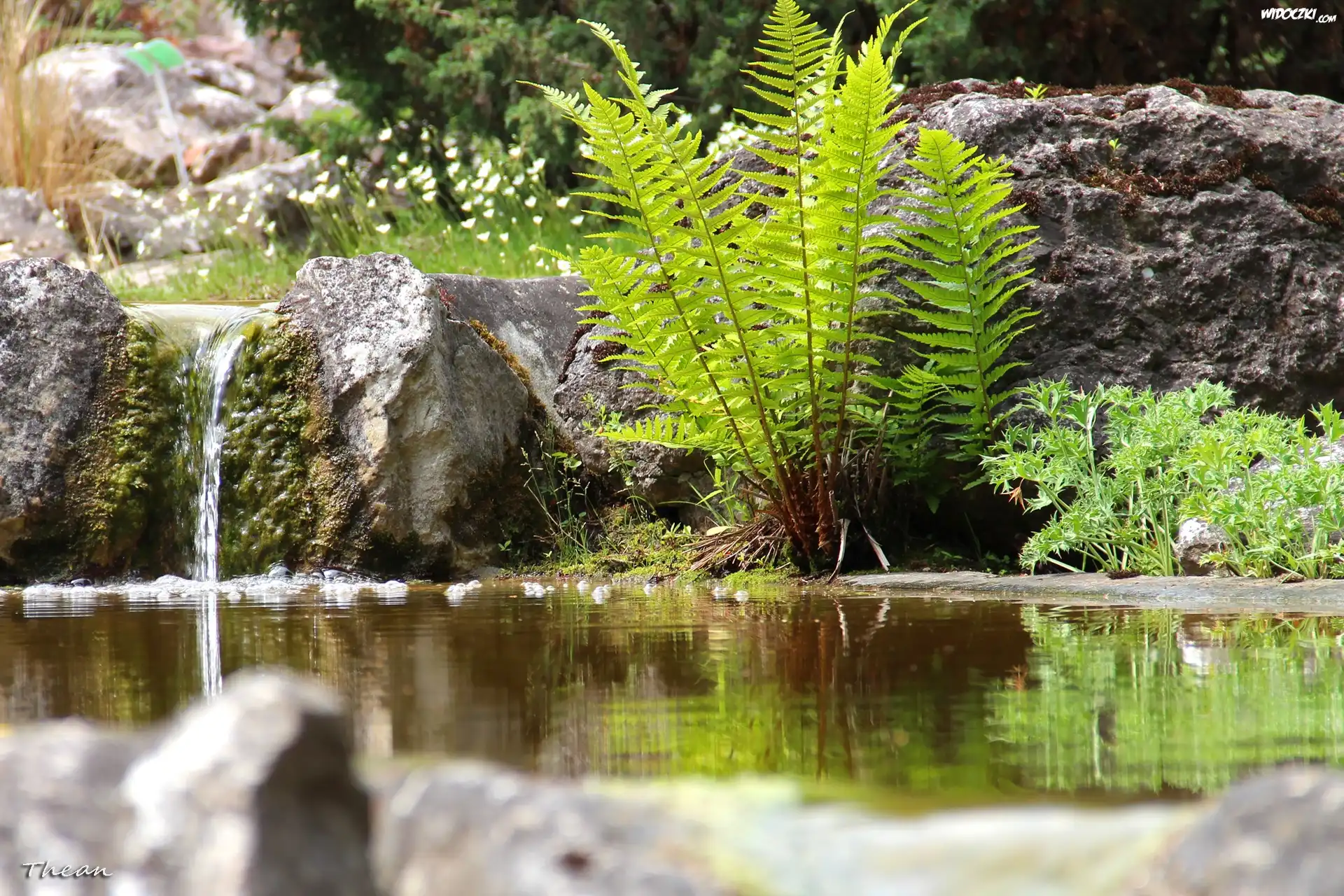 Zdj臋cia, Paprocie, Oczko, Wodne, Kamienie