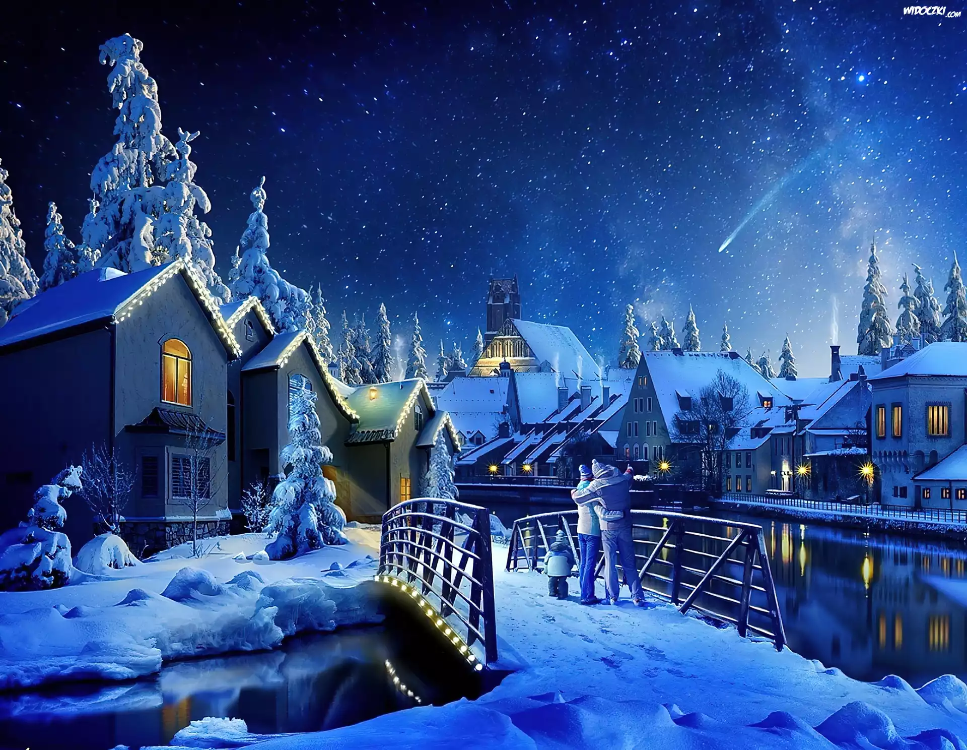 Zdjęcia, Para, Most, Domy, Zima