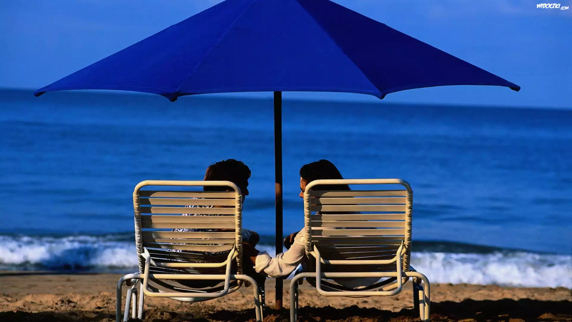 Zdjęcia, Para, Morze, Leżaki, Parasol, Wakacje