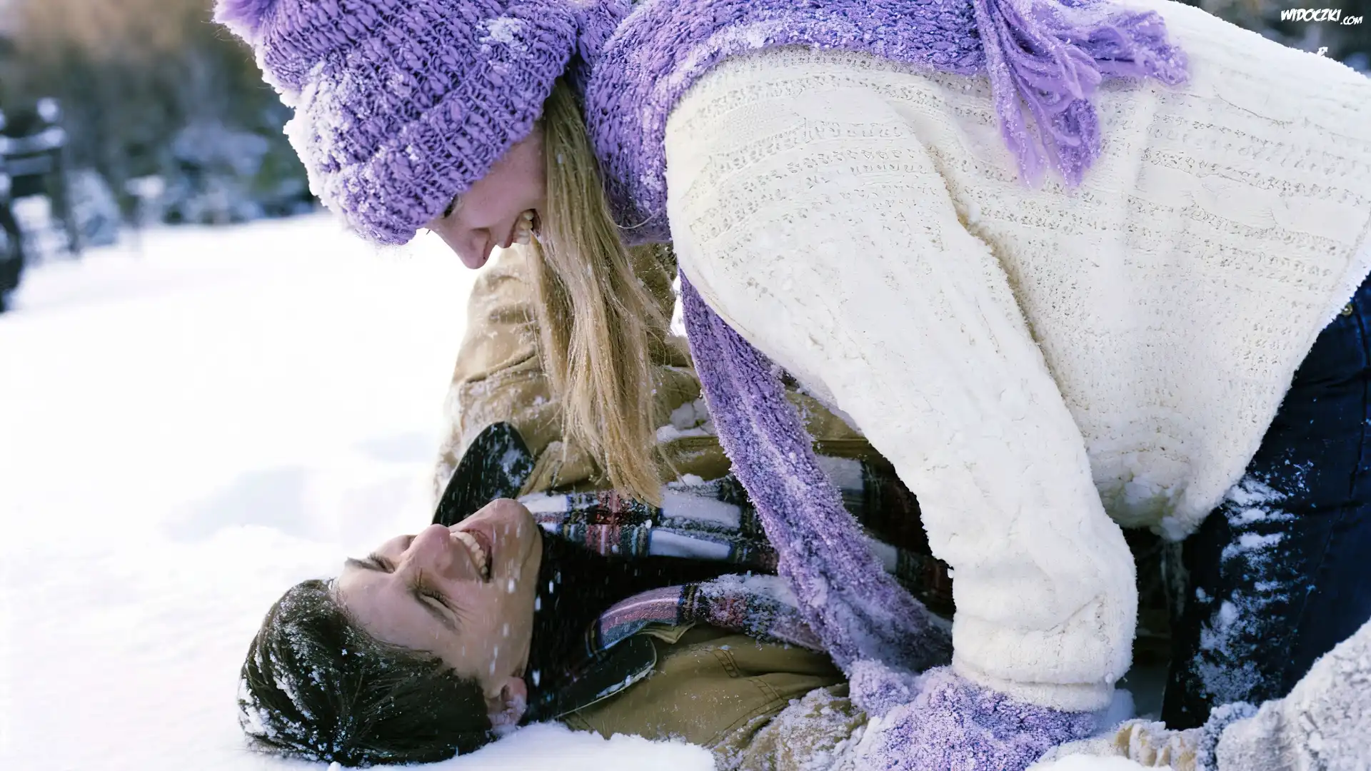 Zdjęcia, Para, Zima, Śnieg, Miłość, Zabawa