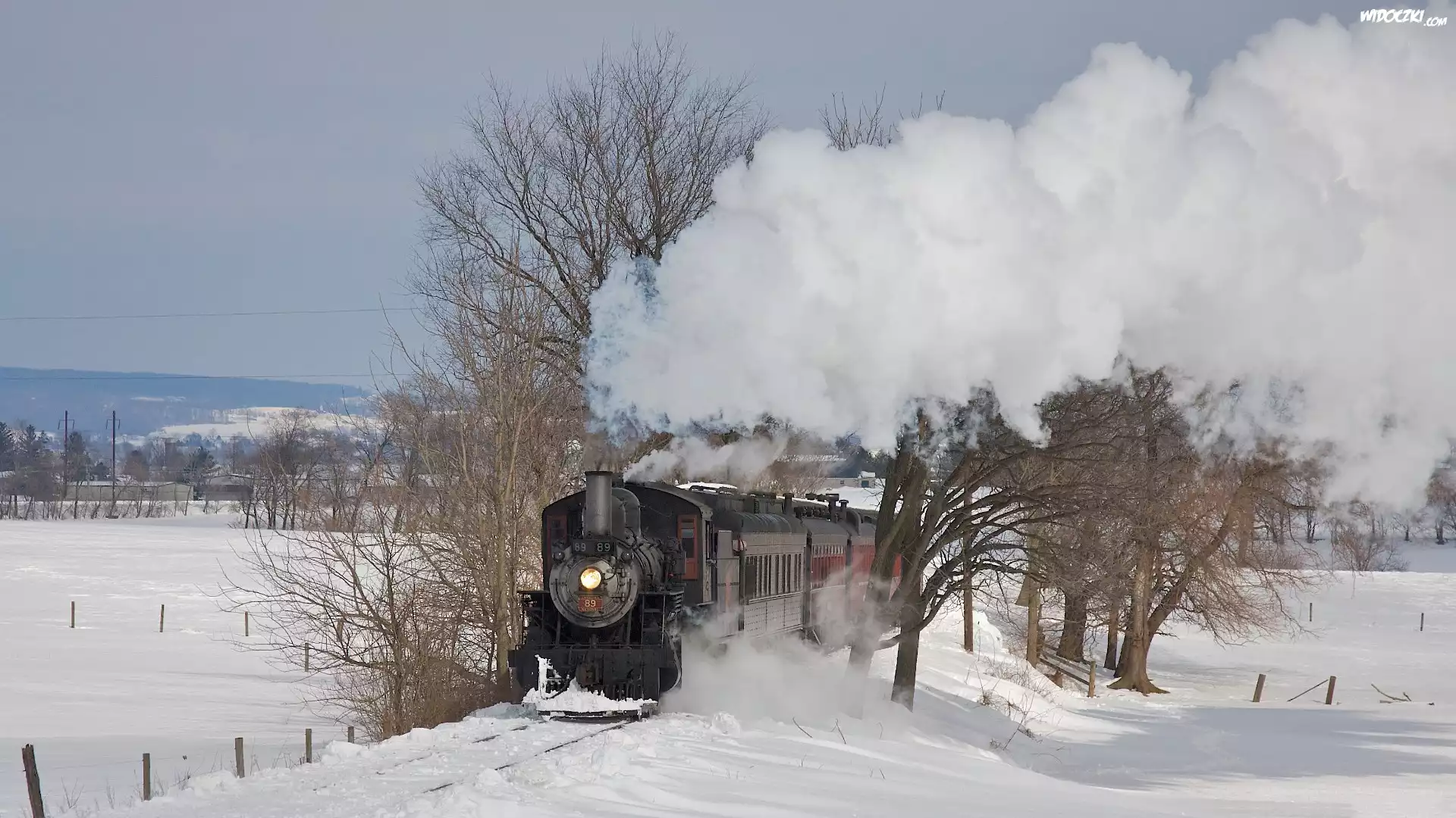 Zdjęcia, Pociąg, Para, Śnieg