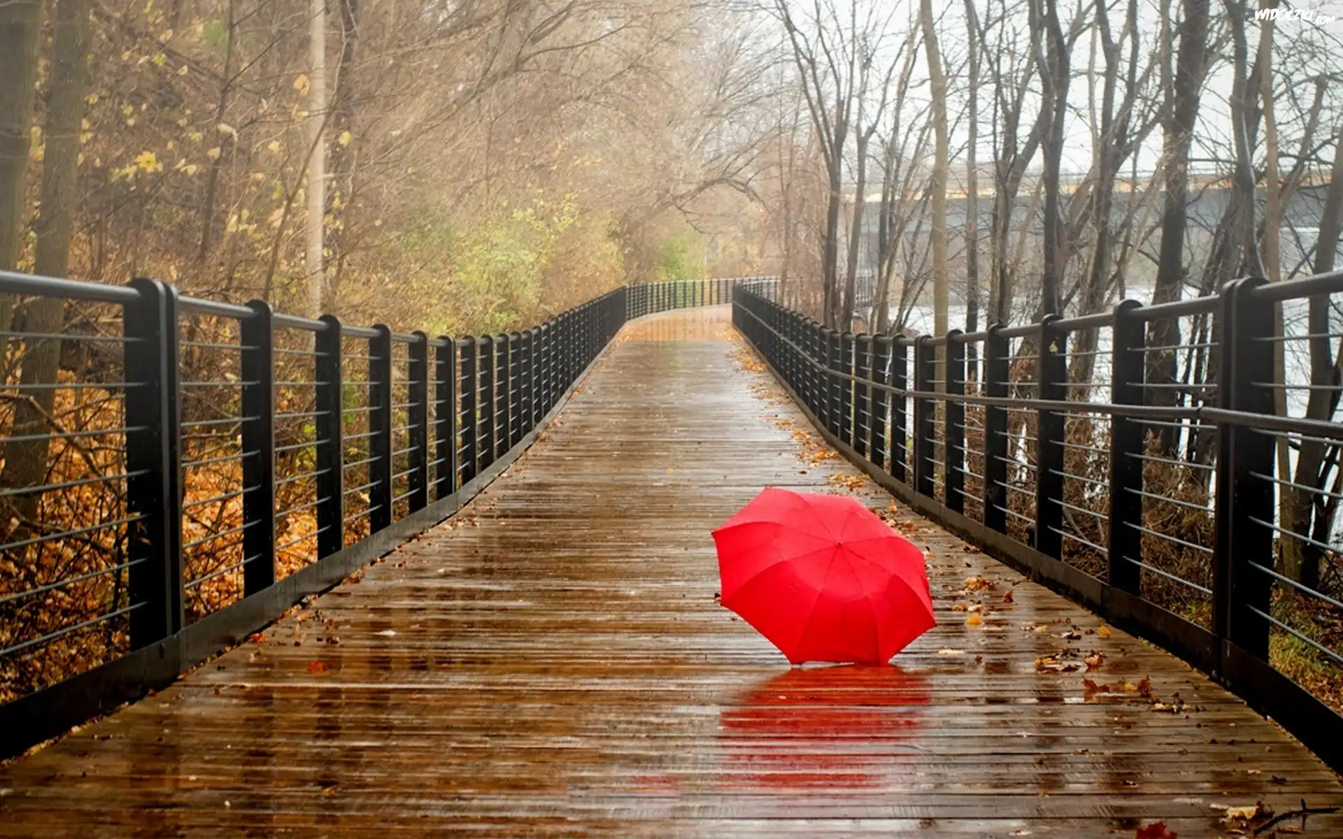 Zdjęcia, Most, Parasol, Jesień