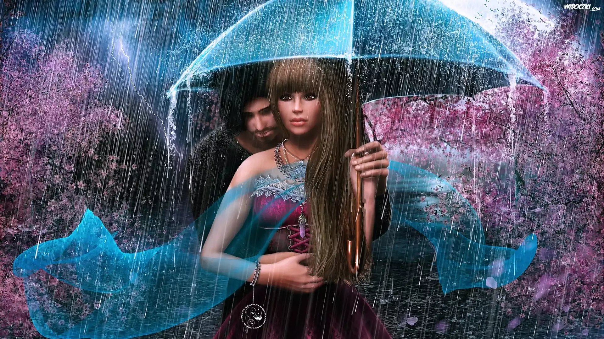 Zdjęcia, Para, Parasol, Deszcz