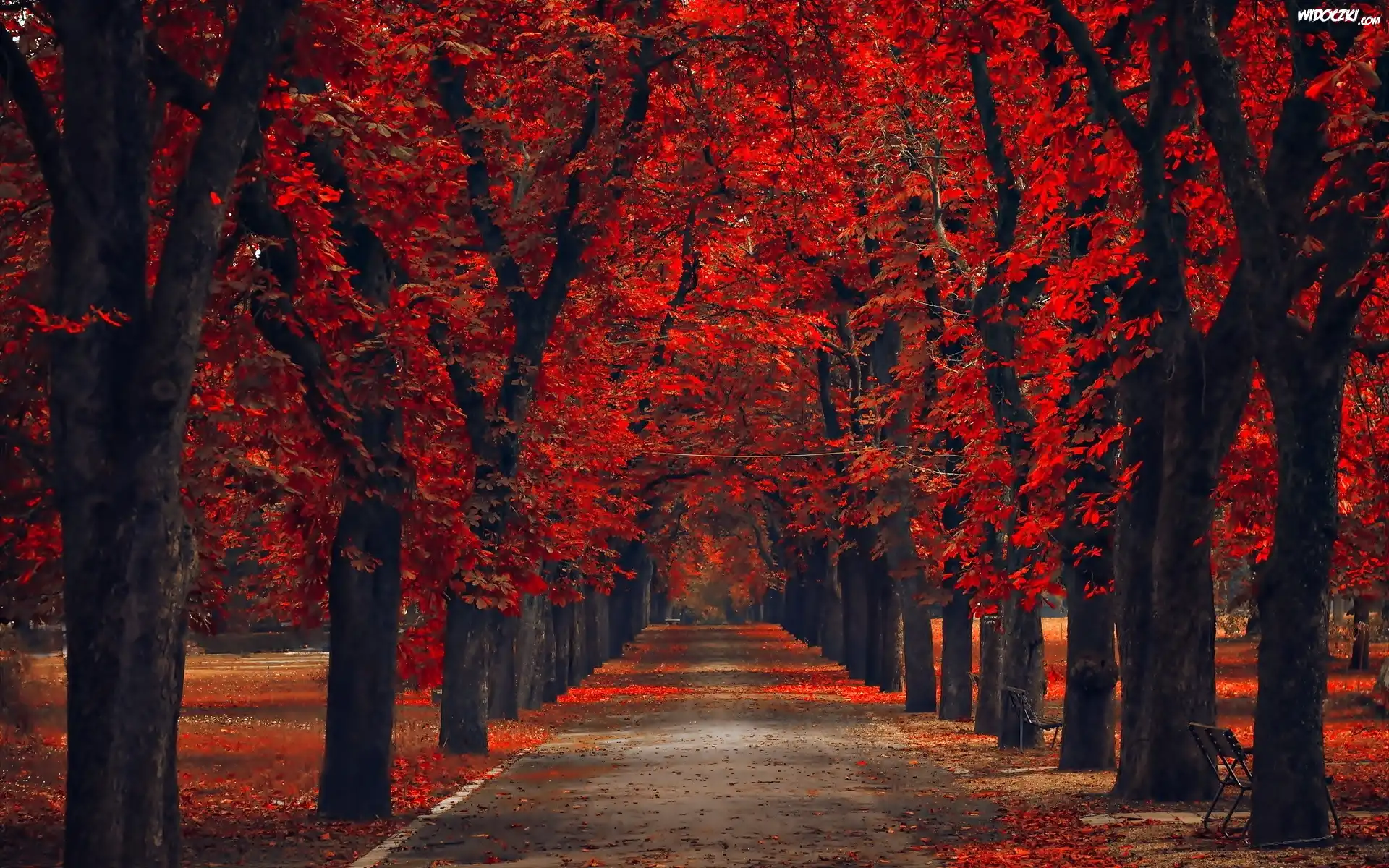 Zdjęcia, Park, Jesień, Czerwone, Drzewa, Aleja, Liście