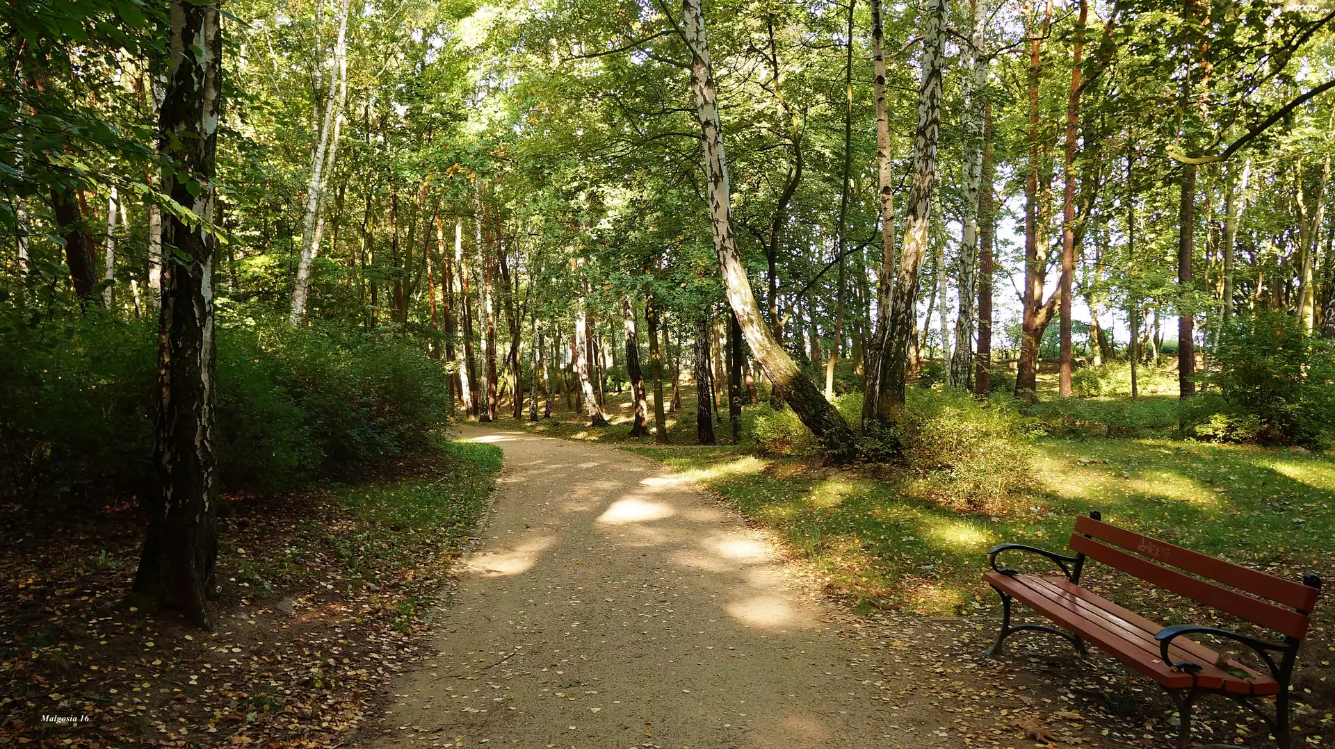 Zdjęcia, Park, Drzewa, Alejka, Ławka