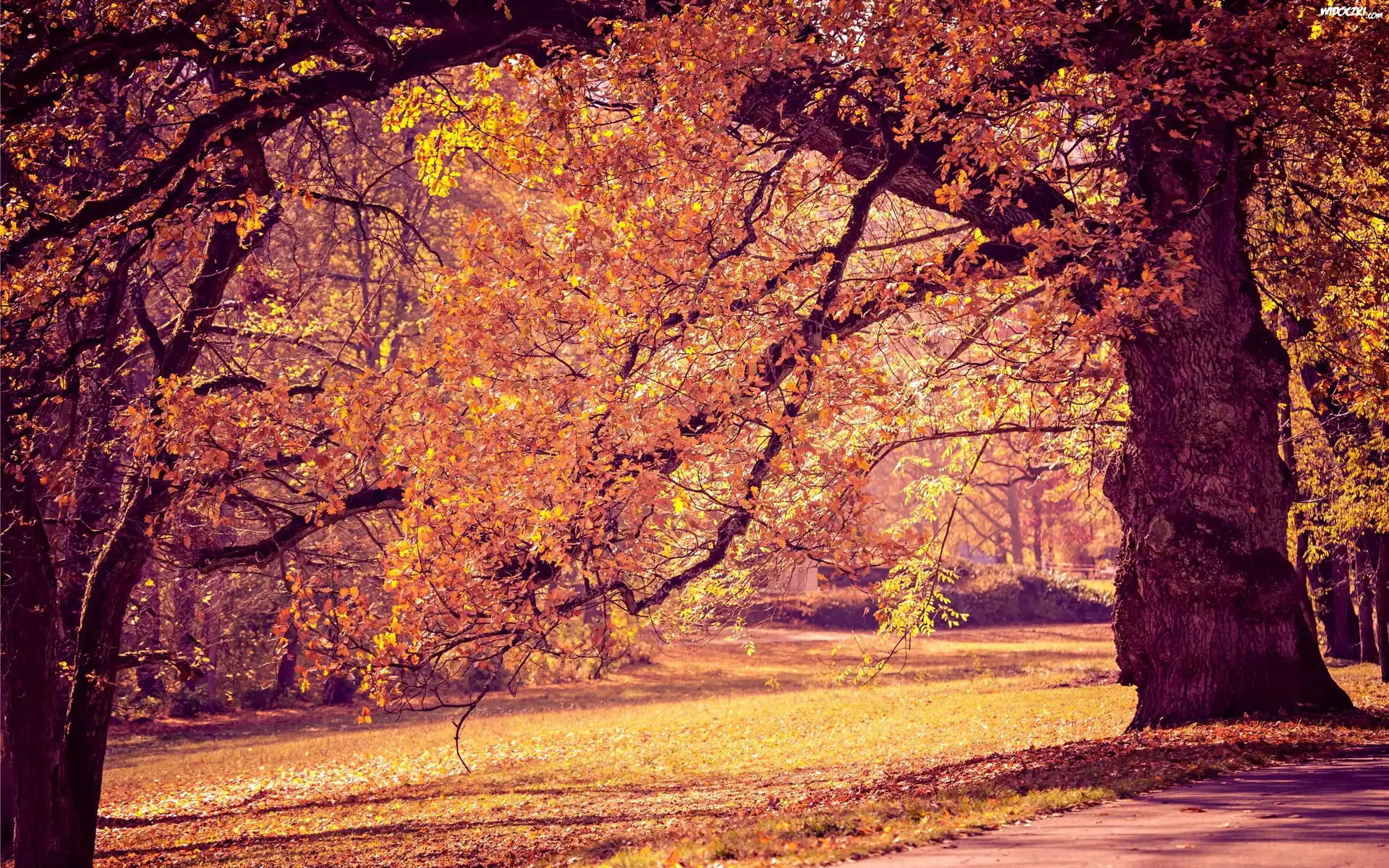 Zdjęcia, Park, Drzewa, Alejki, Jesień