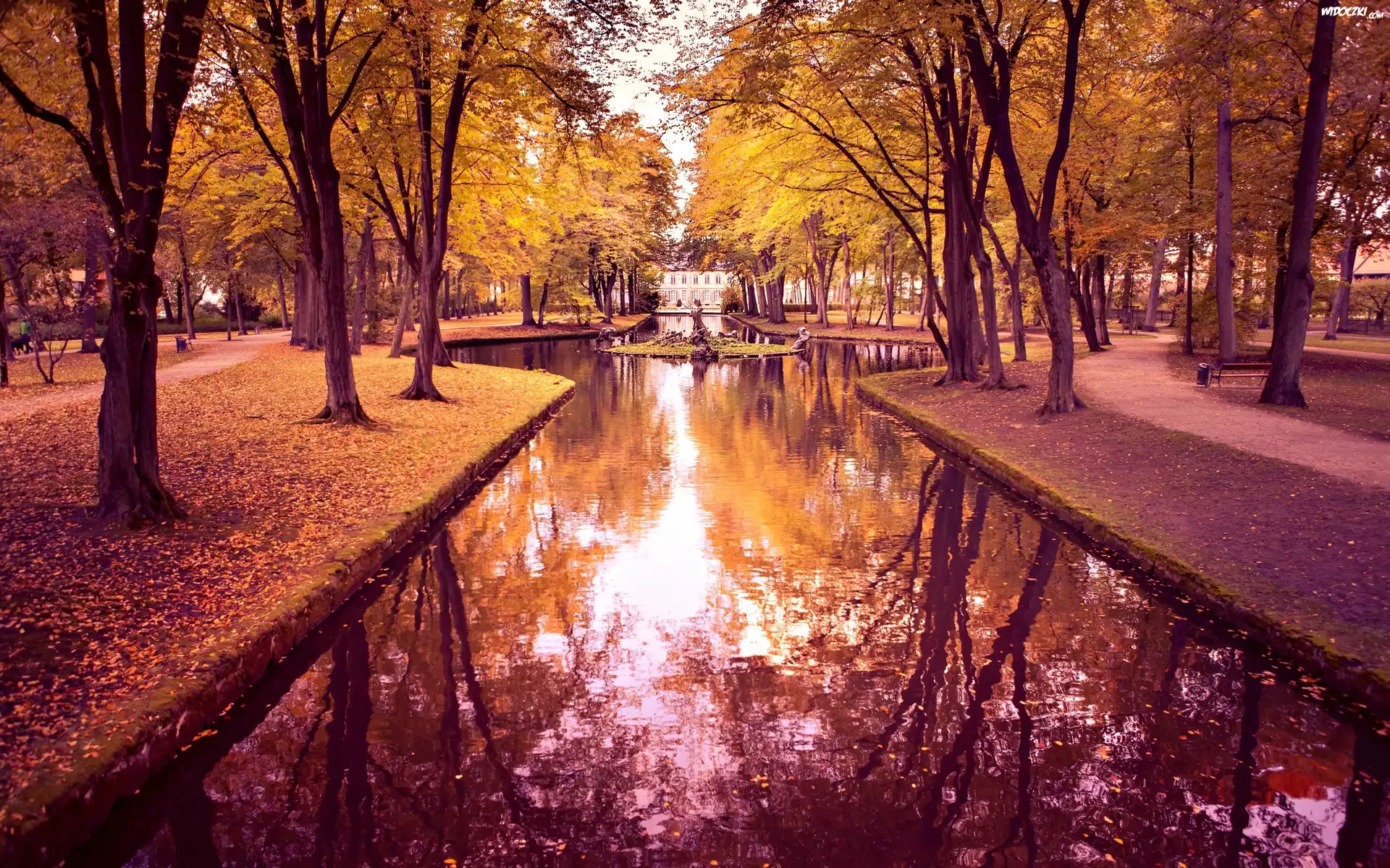 Park, Zbiornik, Wodny, Alejki, Jesień