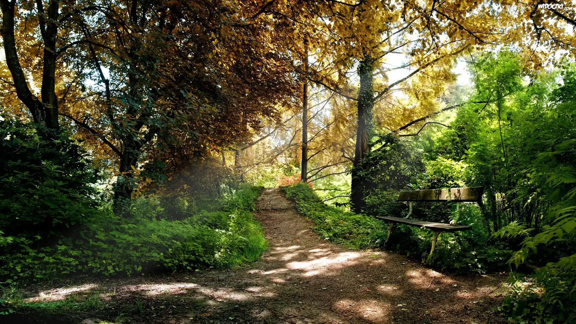 Zdjęcia, Park, Ścieżka, Ławeczka, Drzewa