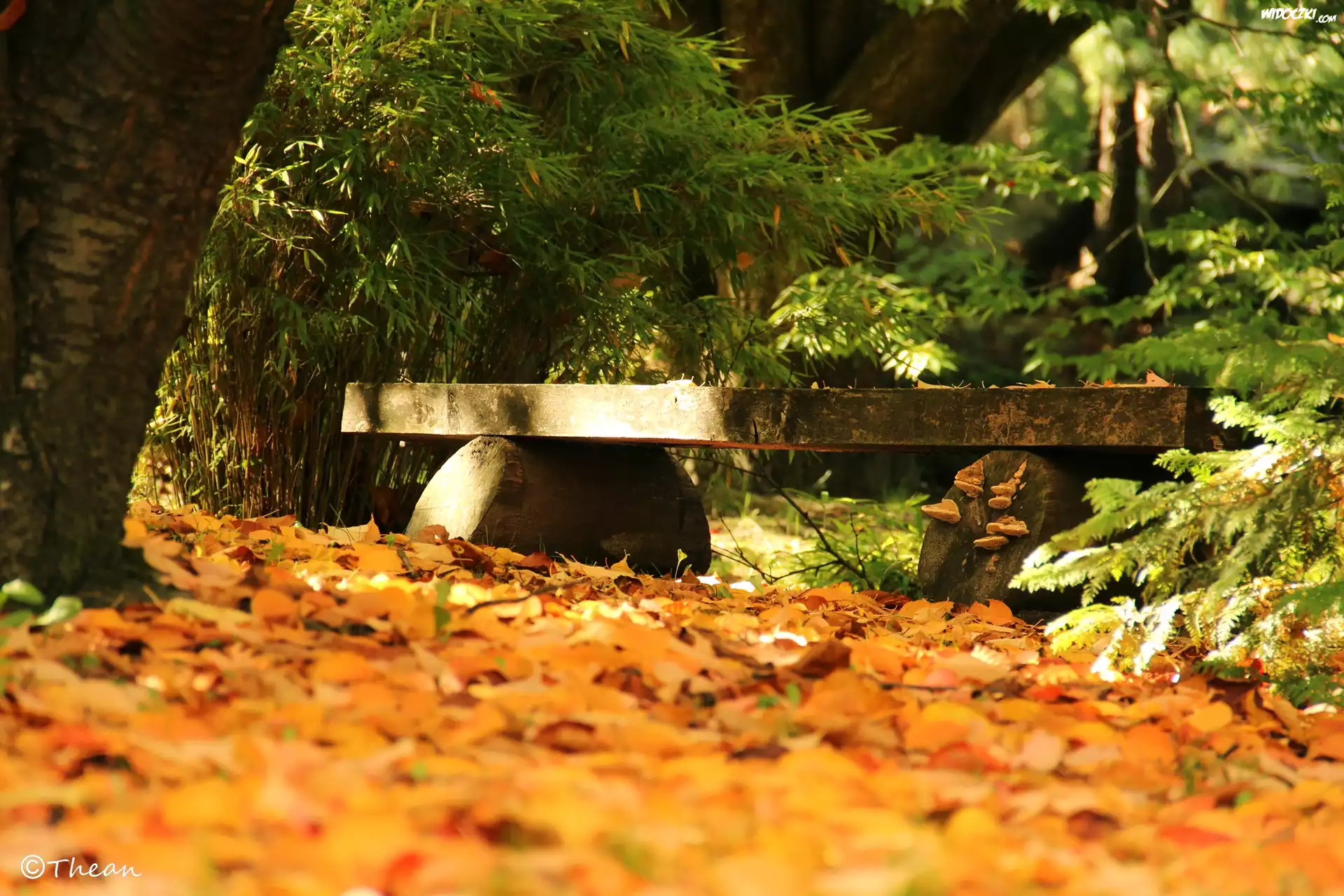 Zdjęcia, Ławeczka, Park, Jesień