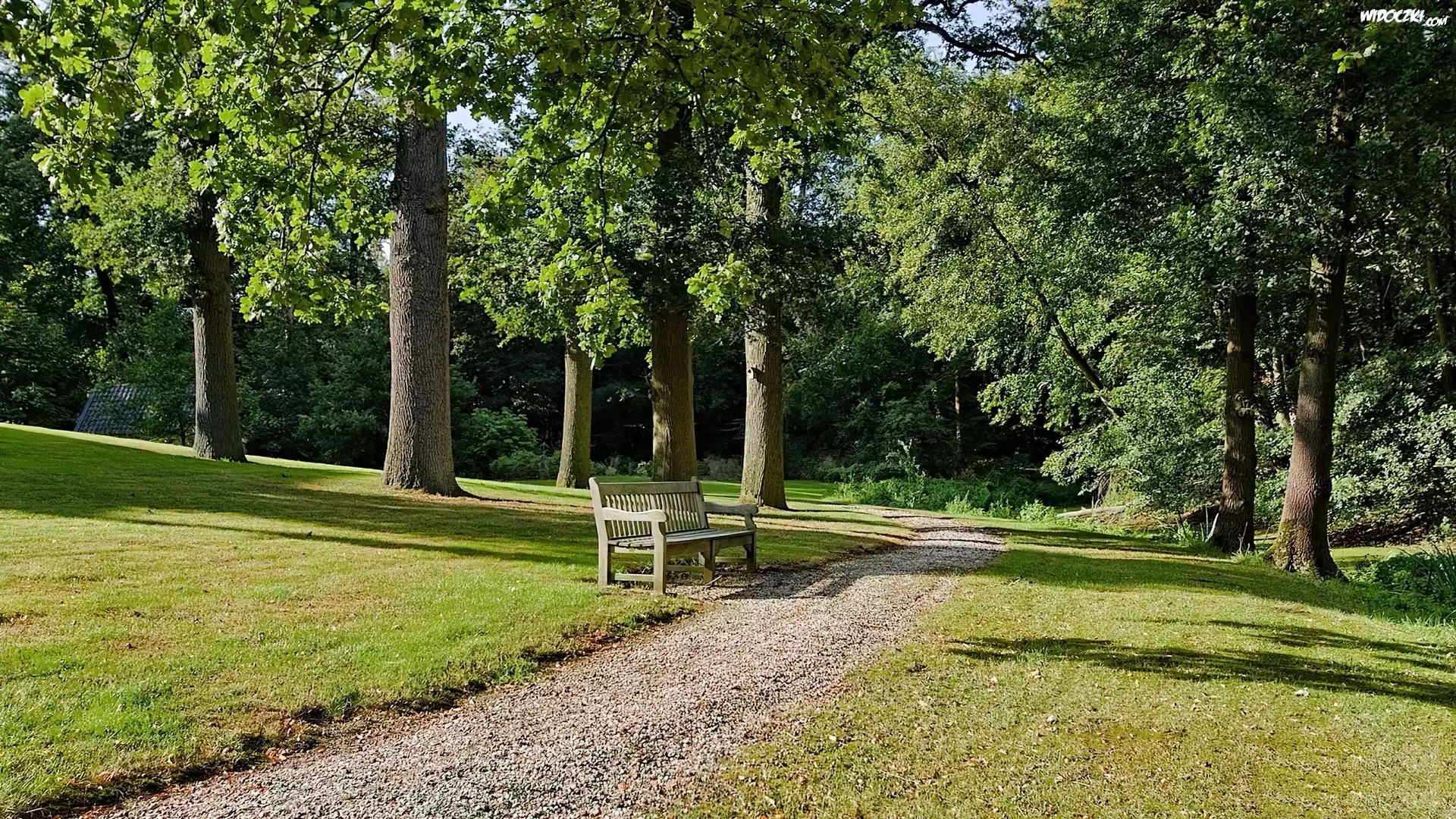 Zdjęcia, Park, Aleja, Ławka, Lato