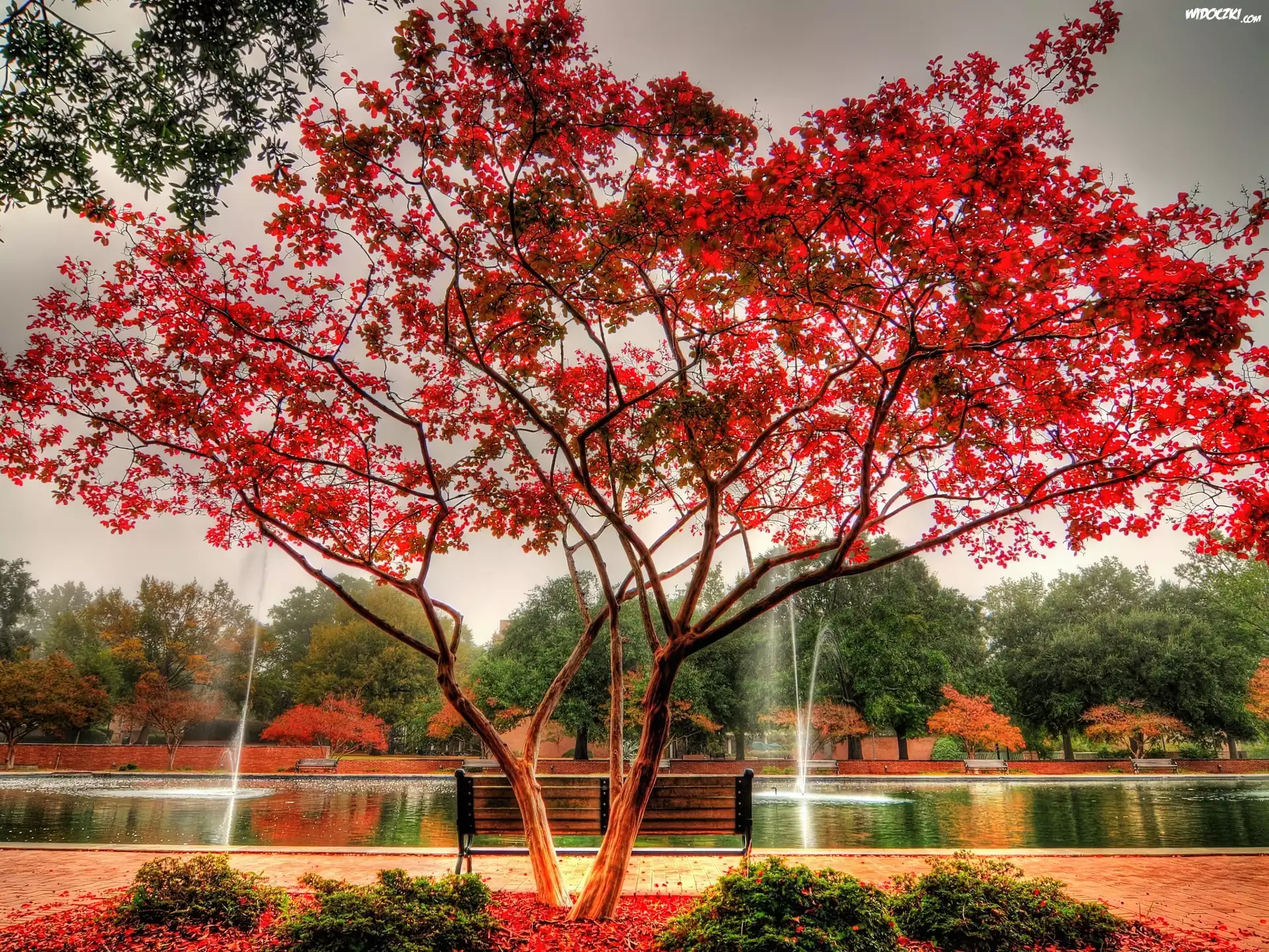 Zdjęcia, Park, Drzewo, Ławka, Jesień
