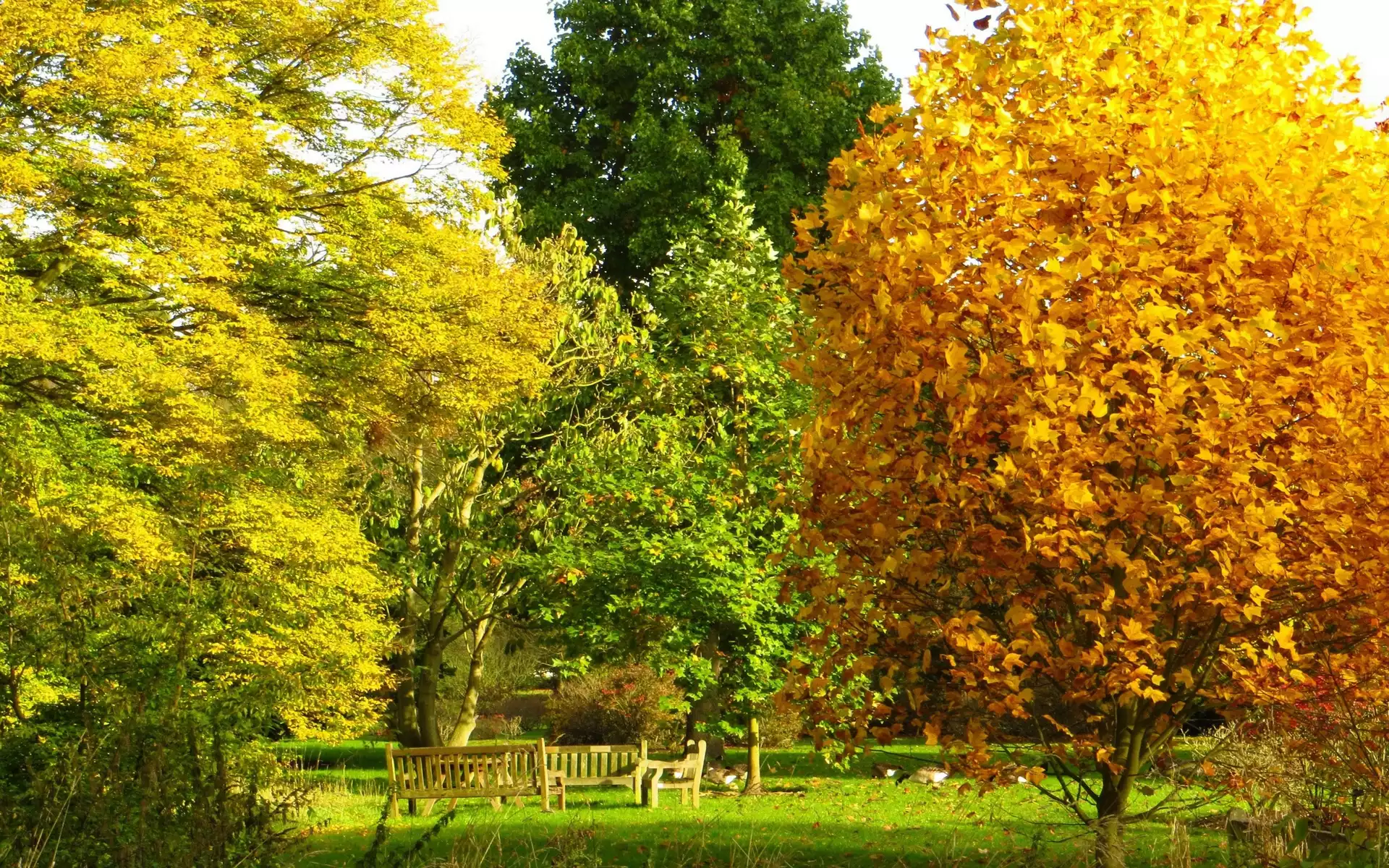 Park, Kolorowe, Drzewa, Ławki, Jesień