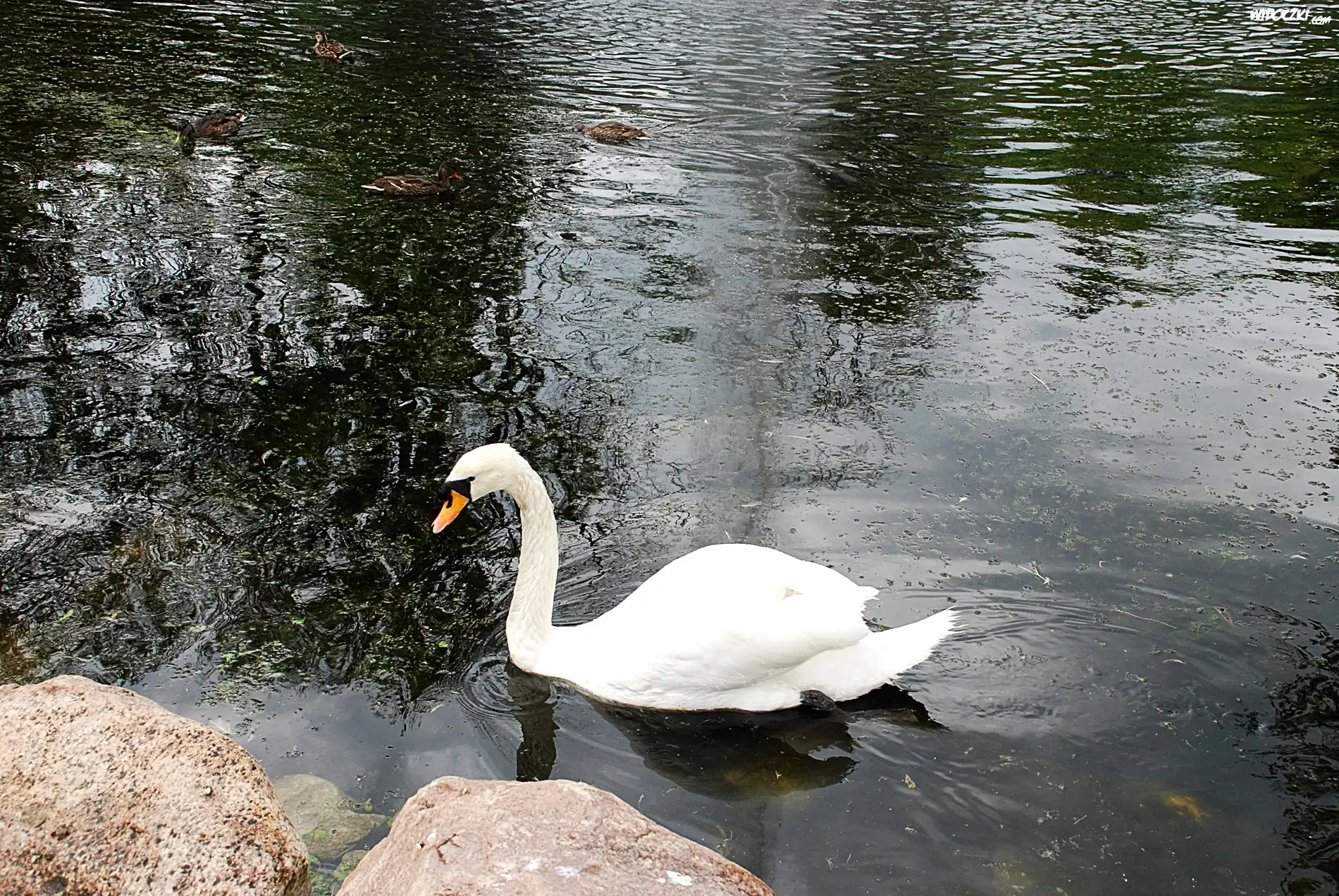 Zdjęcia, Park, Staw, Biały, Łabędz