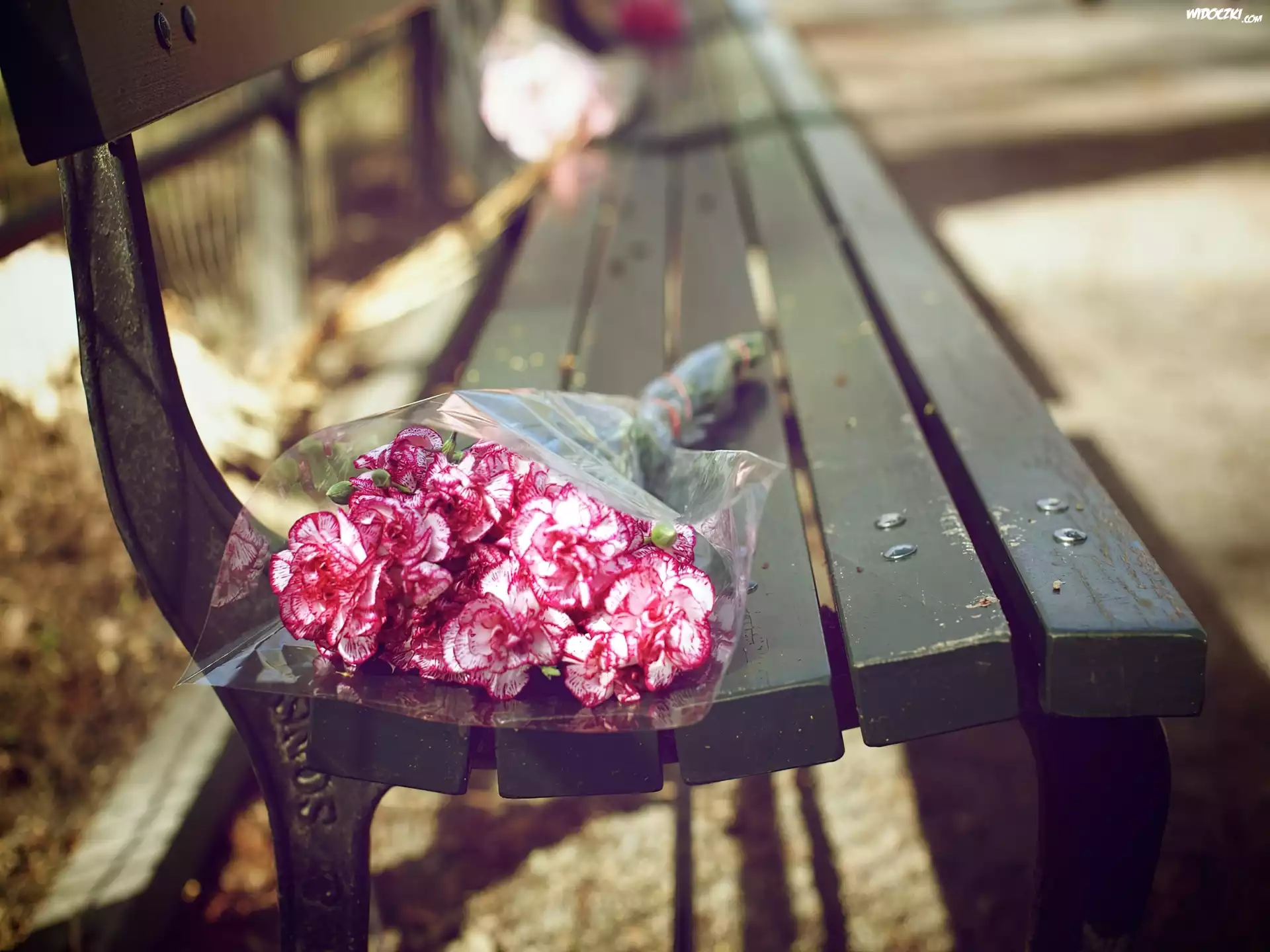 Zdjęcia, Park, Ławka, Bukiet, Goździki