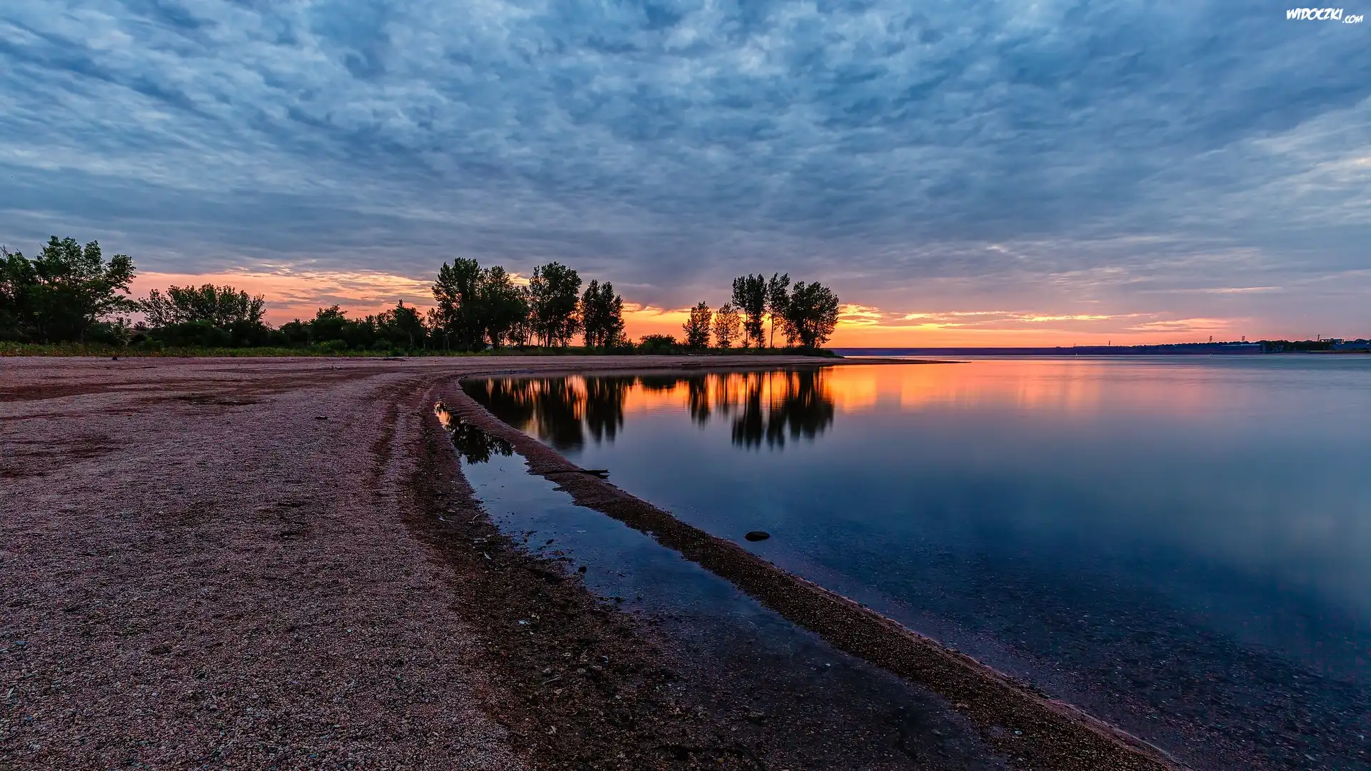 Stany Zjednoczone, Kolorado, Park stanowy, Chatfield State Park, Jezioro, Chatfield Lake, Drzewa, Chmury |