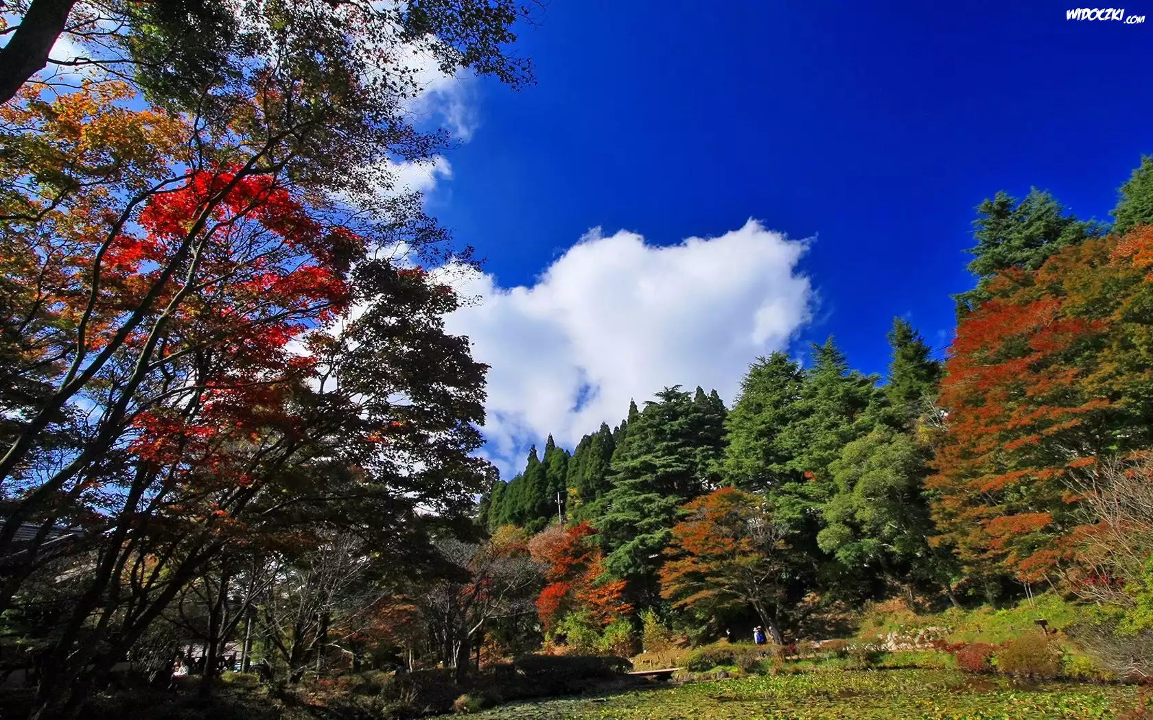 Park, Kolorowe, Drzewa, Chmury, Jesień