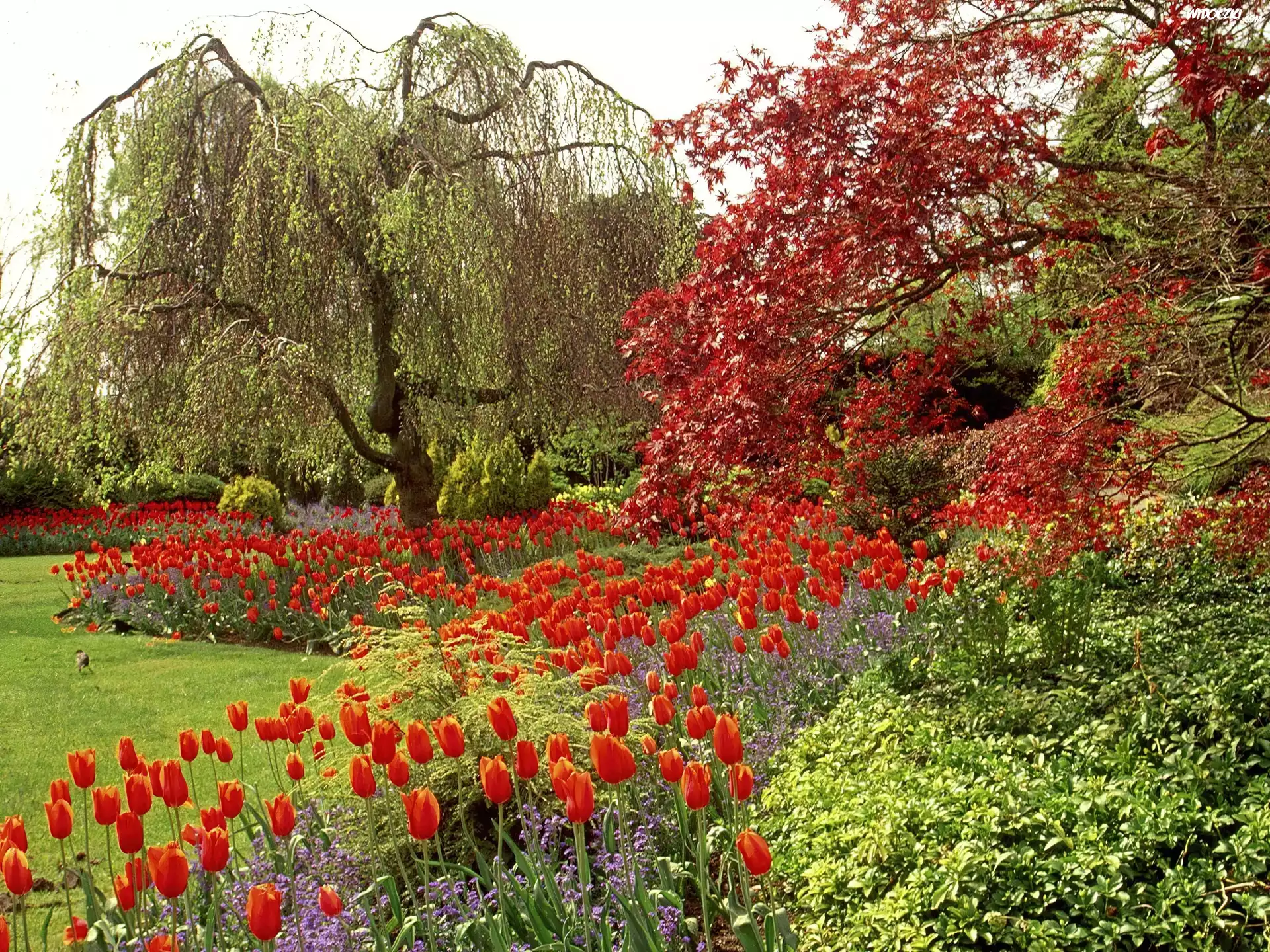 Zdjęcia, Park, Królowej, Elżbiety, Czerwone, Tulipany