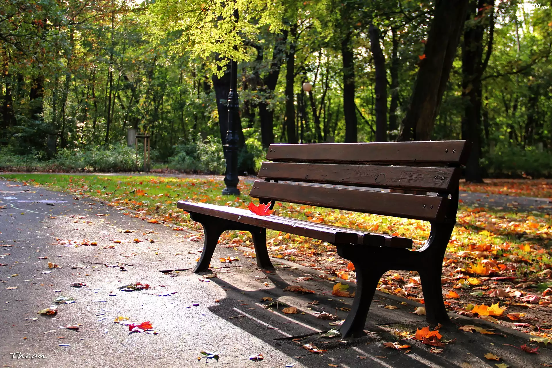 Park, Ławka, Czerwony, Liść