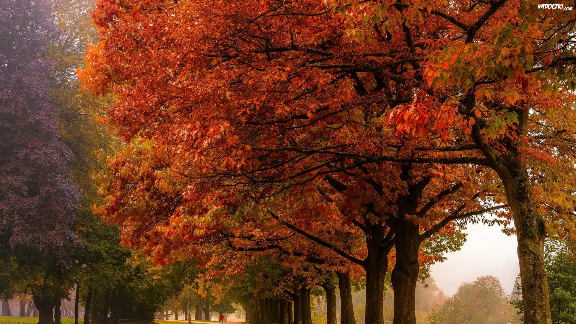 Zdjęcia, Park, Aleja, Drzewa, Jesień