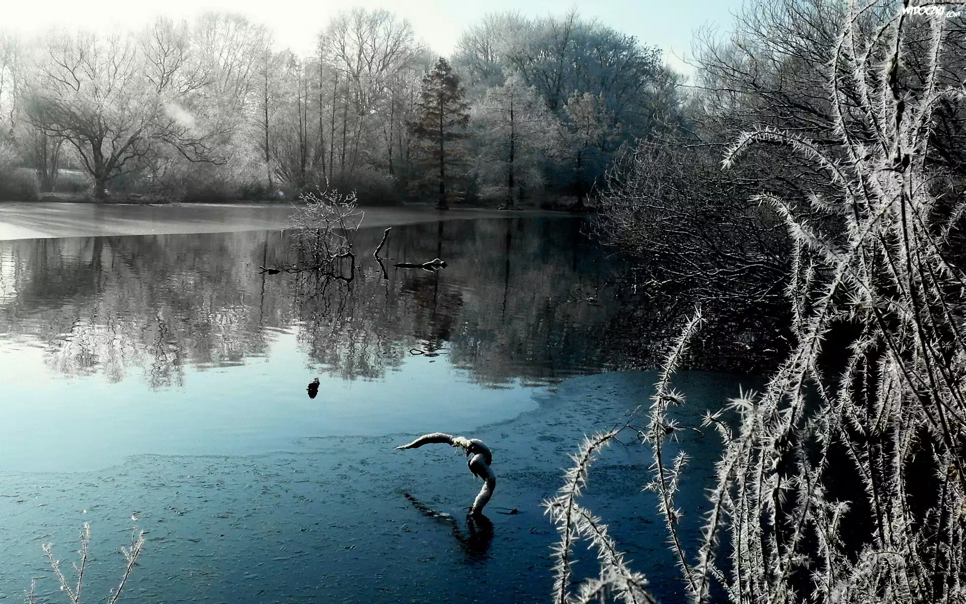 Zdjęcia, Park, Jezioro, Drzewa, Zima