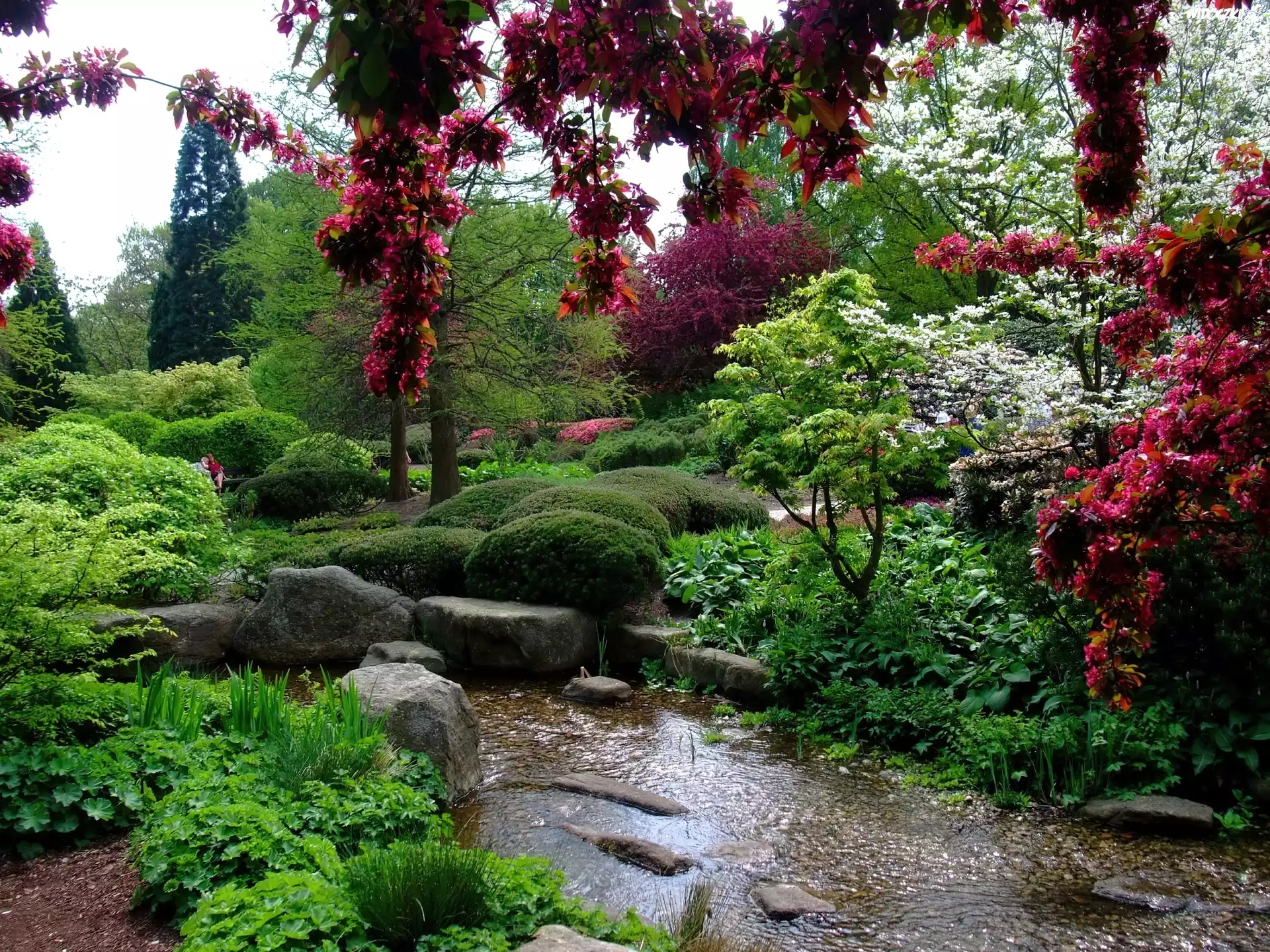 Zdjęcia, Park, Krzewy, Drzewa, Woda