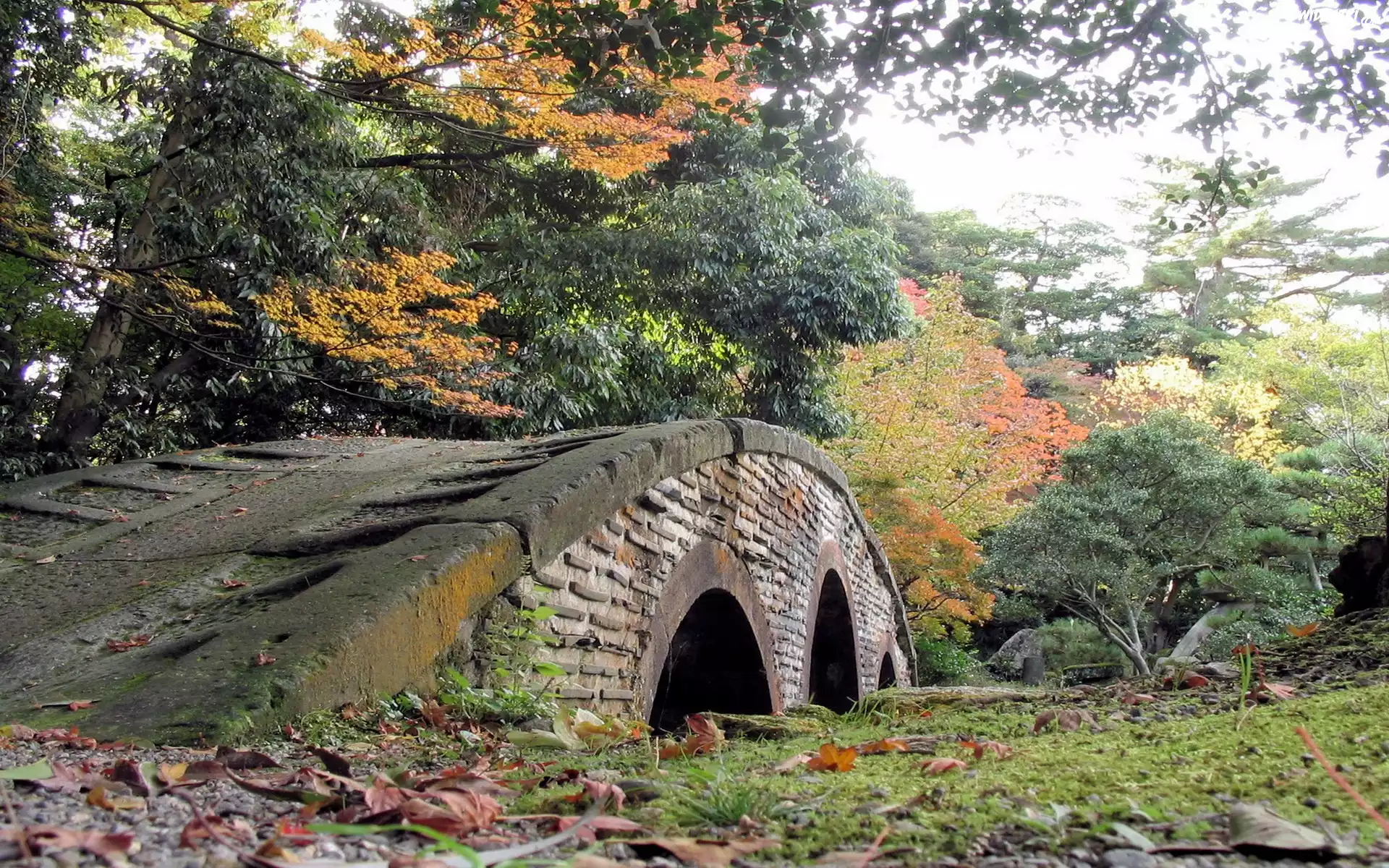 Park, Mostek, Drzewa, Jesień