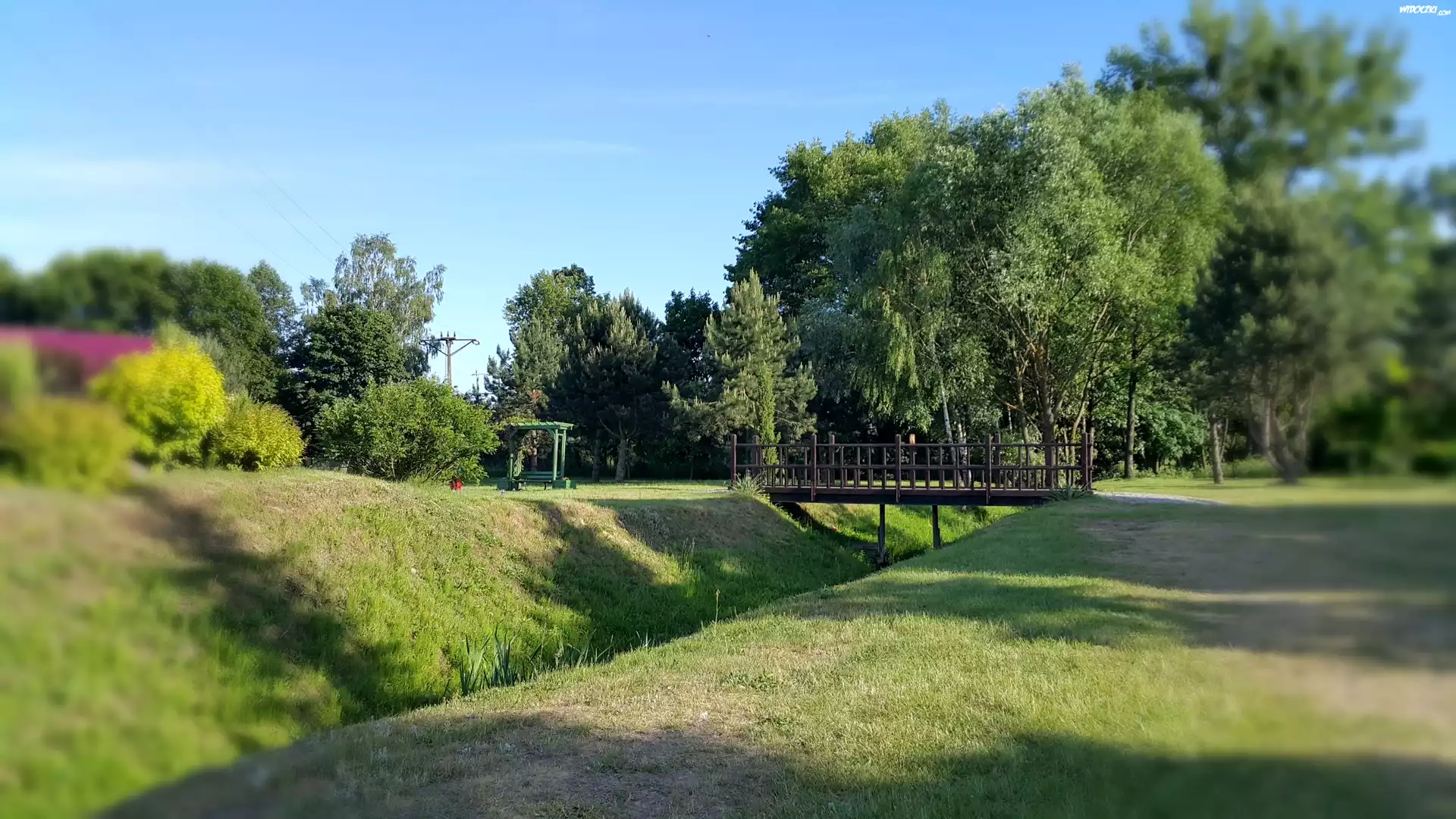Zdjęcia, Park, Mostek, Drzewa, Rzeczka