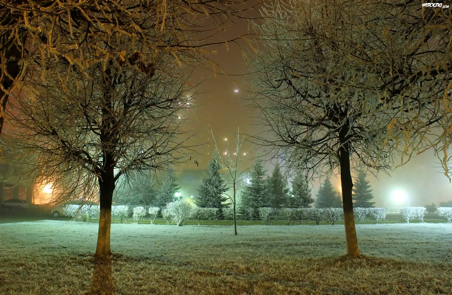 Zdjęcia, Park, Noc, Drzewa, Oświetlenie
