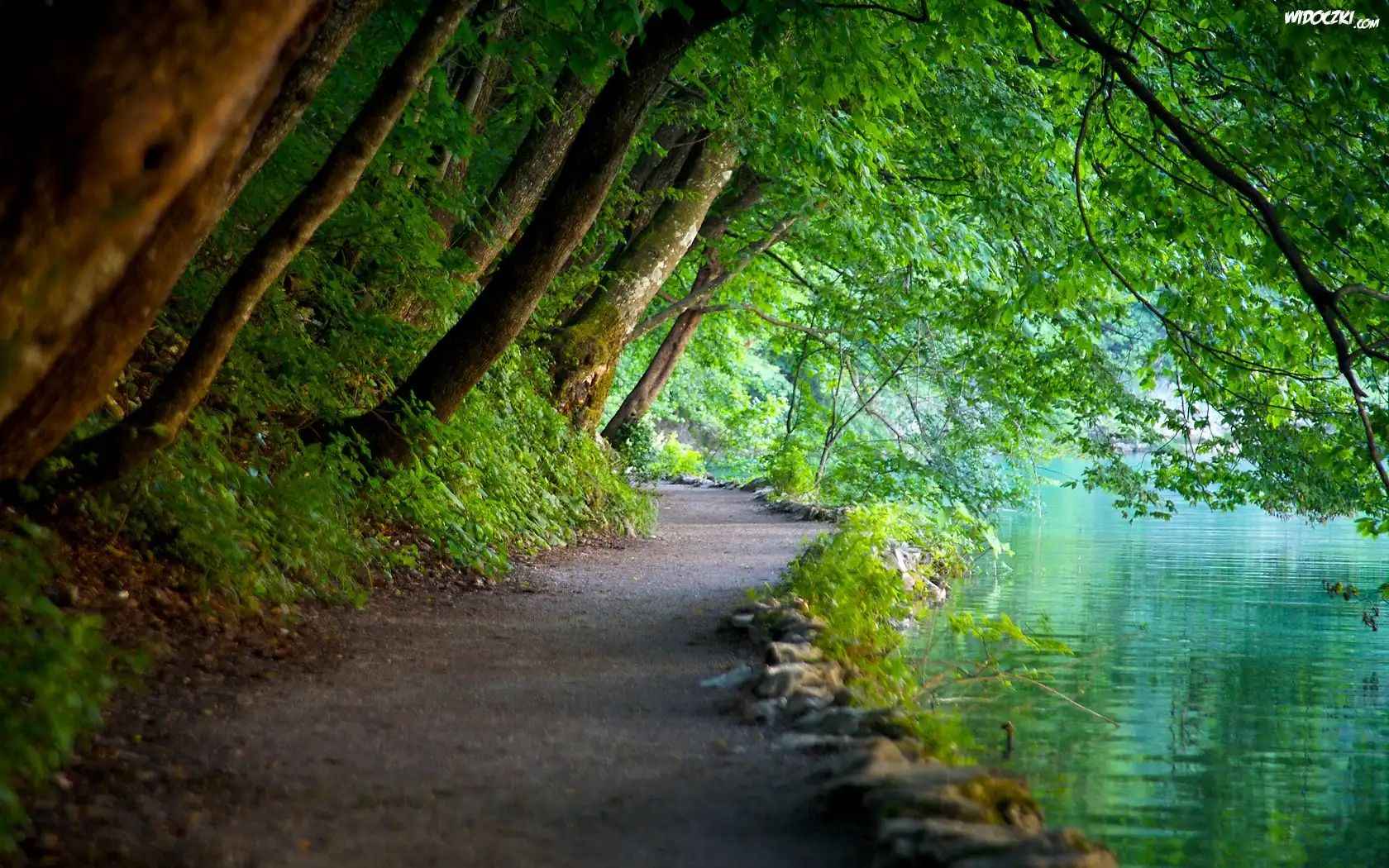 Zdjęcia, Park Narowodwy Plitwickie, Woda, Drzewa, Ścieżka