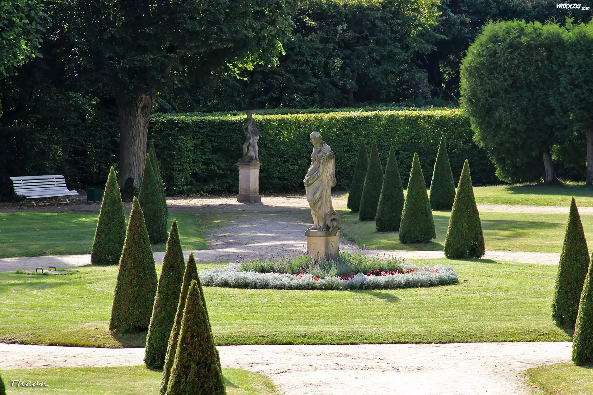 Zdjęcia, Park Raczyńskich, Rogalin, Posąg, Drzewa, Krzewy