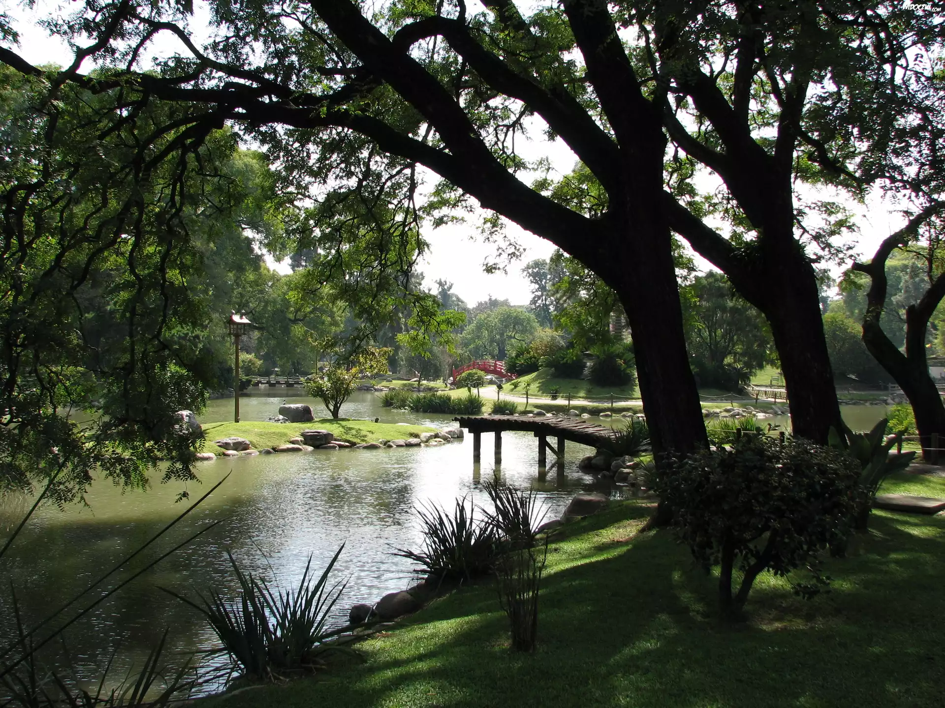 Zdj臋cia, Park, Rzeka, Drzewa, Mostek