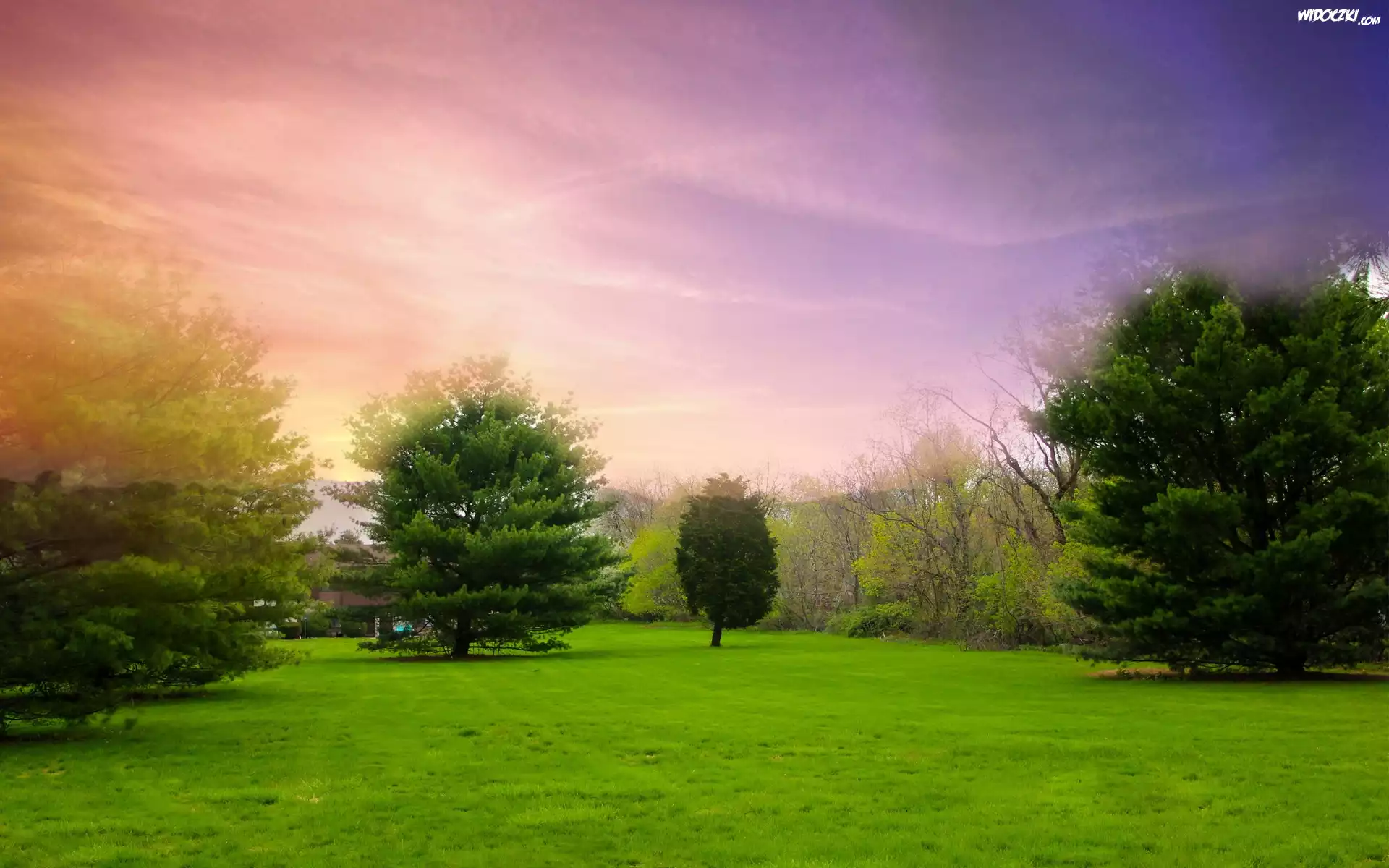 Zdj臋cia, Park, Zielone, Drzewa, Krzewy