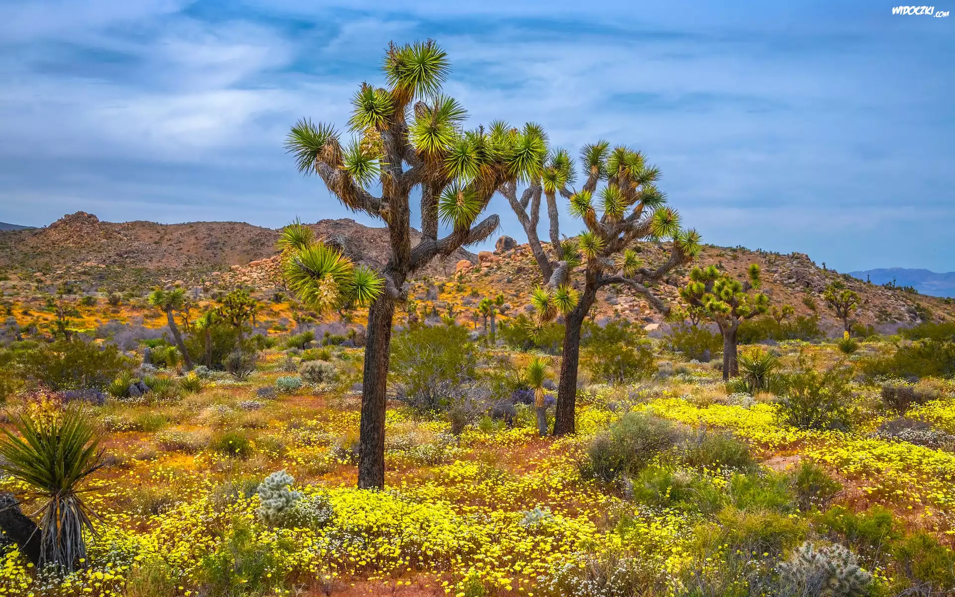 Stany Zjednoczone, Kalifornia, Park Narodowy Joshua Tree, Jukki krótkolistne, Drzewo Jozuego, Roślinność, Wzgórza |