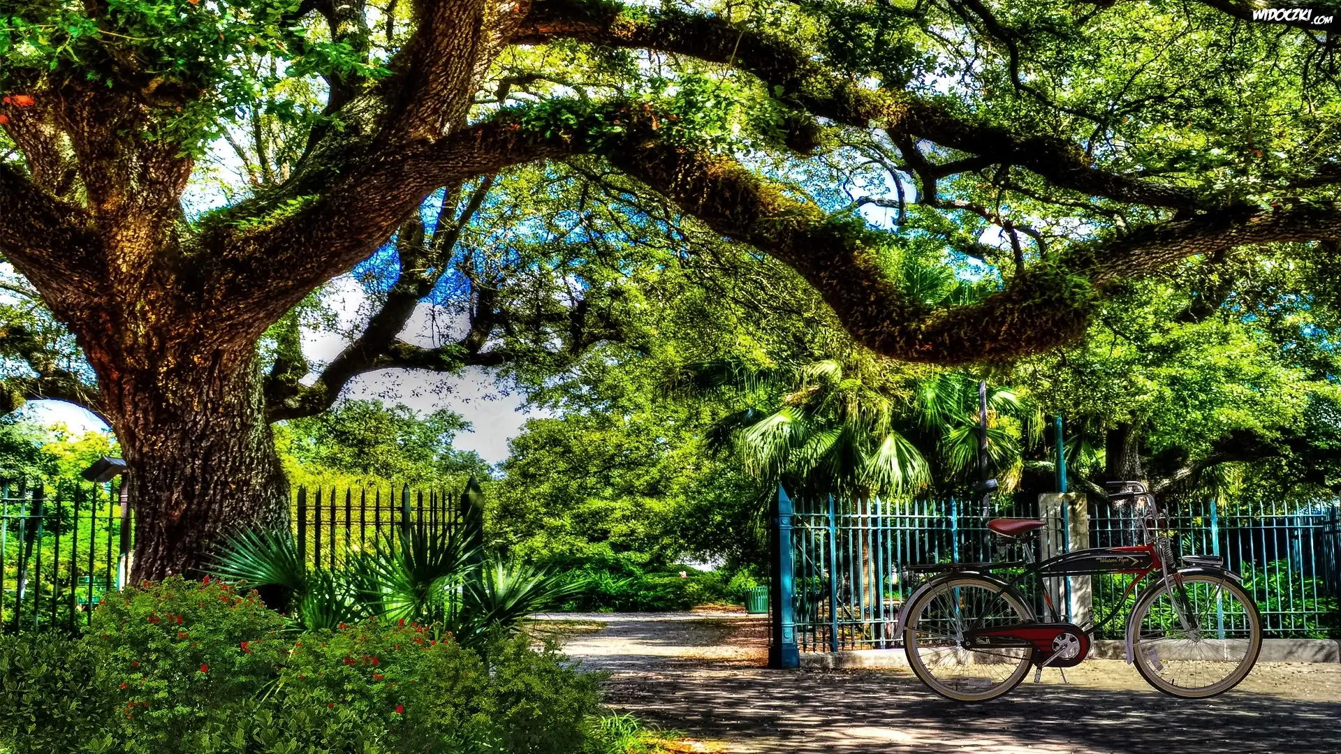 Zdjęcia, Park, Wejście, Drzewo, Rower