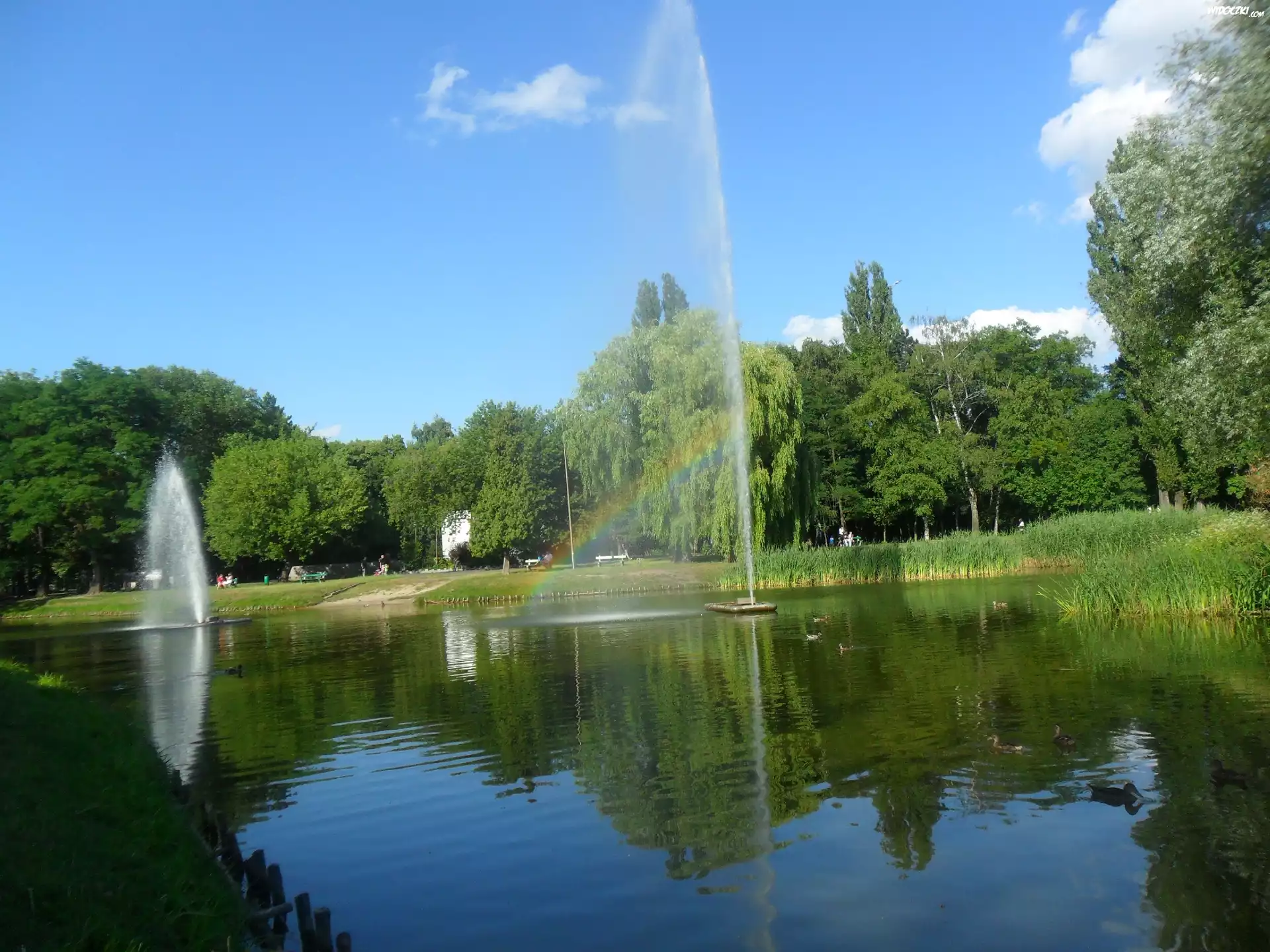 Zdjęcia, Park, Staw, Fontanna, Zieleń