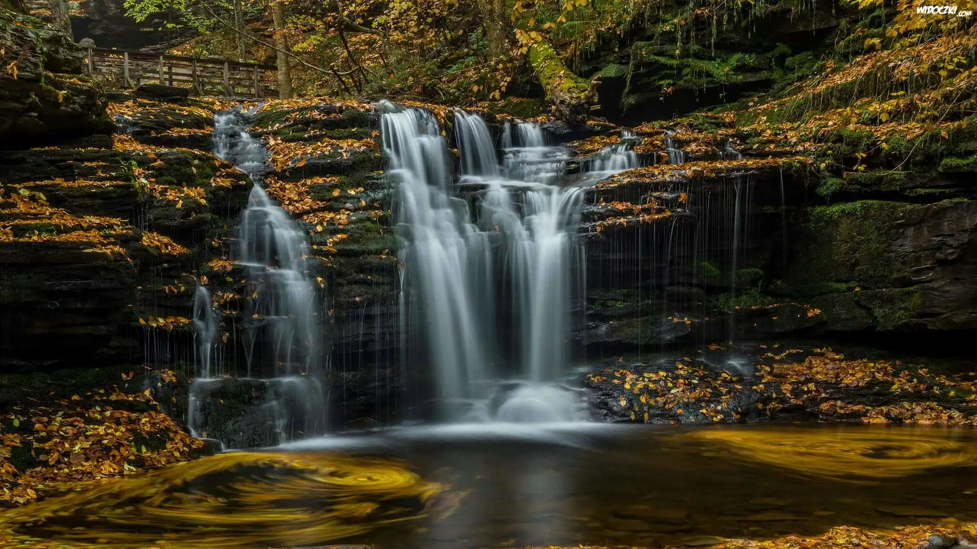 Zdjęcia, Park stanowy Ricketts Glen State Park, Wodospad, Skały, Las, Stan Pensylwania, Stany Zjednoczone